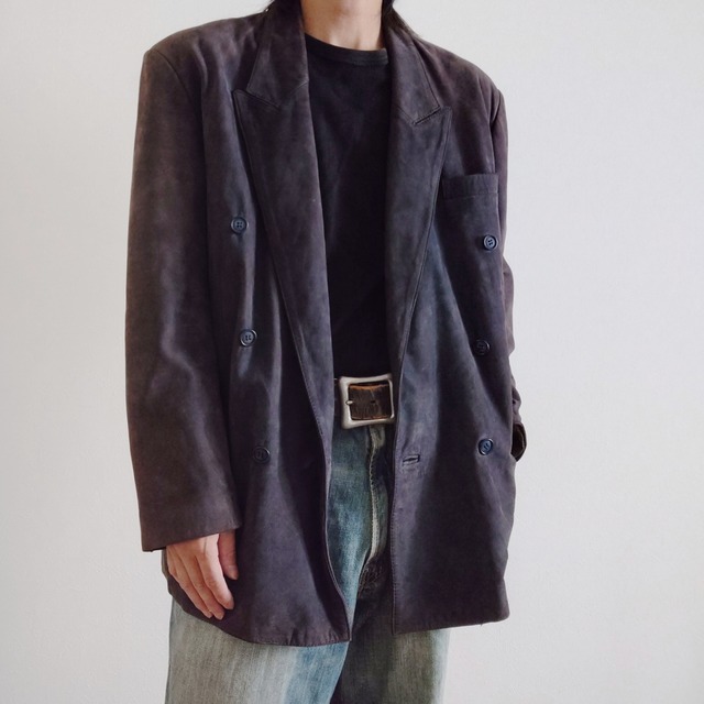 Wind Armor ヌバックレザーテーラードジャケットです。 銀面を擦ったヌバックカウレザーを使用 しっとりとした質感が魅力です。 全体にフェードの入ったナチュラル素材ならではの風合いが◎。 ◇DESCRIPTION◇ brand / country Wind Armor / 日本 size 表記: - (L相当) 実寸(cm) 肩幅:47 身幅:50 着丈:75 袖丈:58 (model: H170 W55) color フェードブラック material 牛革 made 韓国製 feature ・レザーテーラードジャケット ・牛革ヌバック使用 ・ダブルブレスト ・長丈 ・オーバーサイズフィット caution 全体 ヤケがございます。 ※こちらの商品は古着となります。予めご了承下さい。 #leather selection