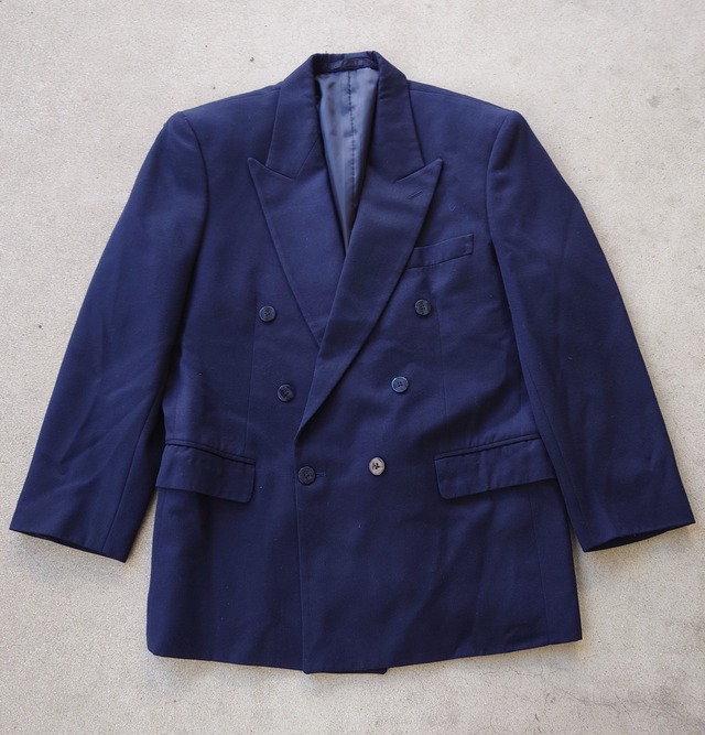 DEAMENGO フリースウールテーラードジャケット。 FINTES社製ファブリックを使用。 深みのあるネイビーのカラーは大人めなスタイリングに◎。 ダブル合わせのダッドなシルエットが魅力です。 ◇DESCRIPTION◇ brand / country DEAMENGO / - size 表記: 46 実寸(cm) 肩幅:45 身幅:52 着丈:77 袖丈:57 (model: H170 W55) color ネイビー material フリースウール100% made - feature ・テーラードジャケット ・ダブルブレスト ・FINTES社製ファブリック ・ダッドシルエット caution 左袖 シミがございます。 ※こちらの商品は古着となります。予めご了承下さい。 #checkselection