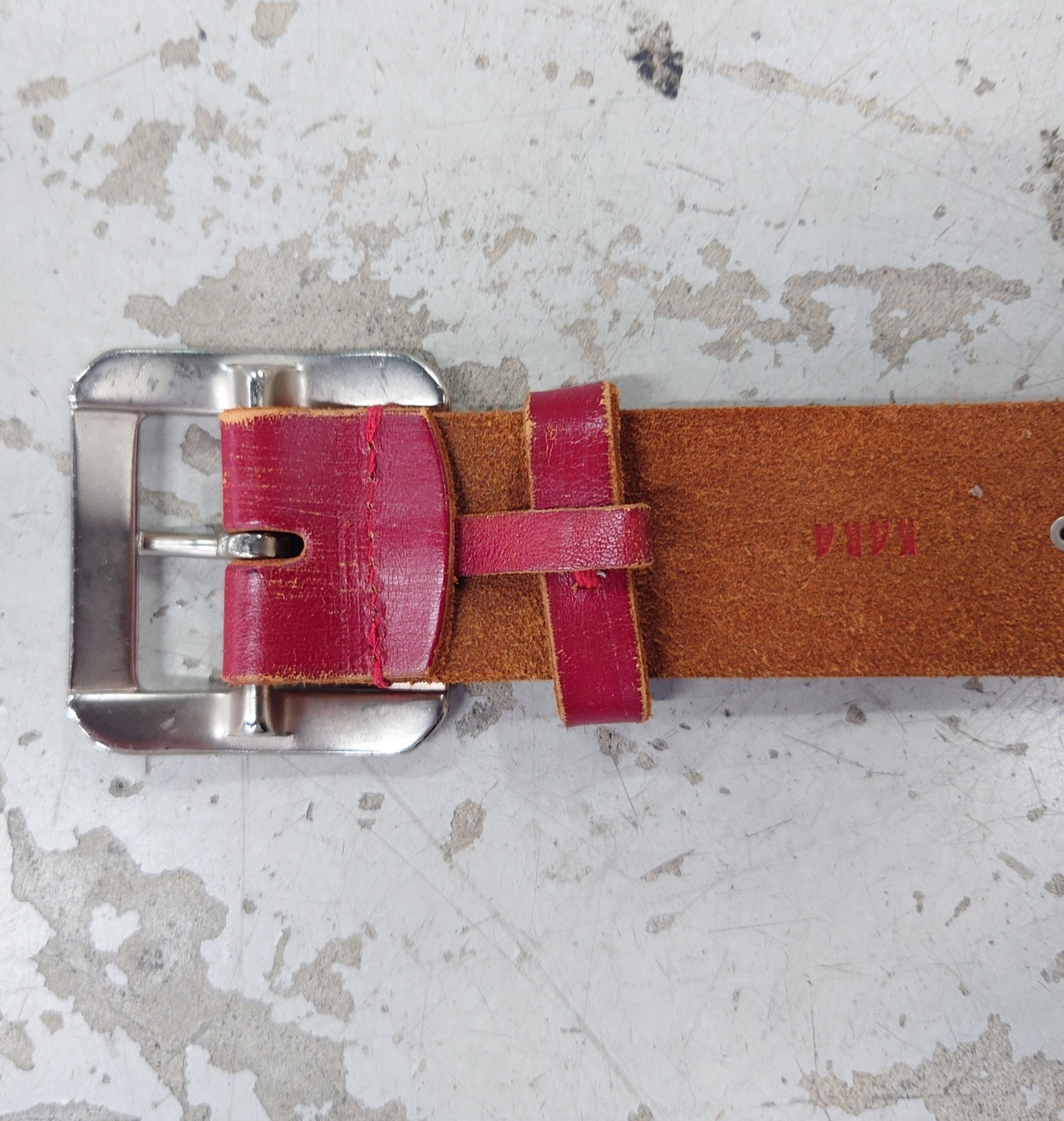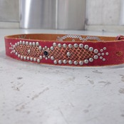 KARA- OVERLAY LEATHER STUDS BELT RED