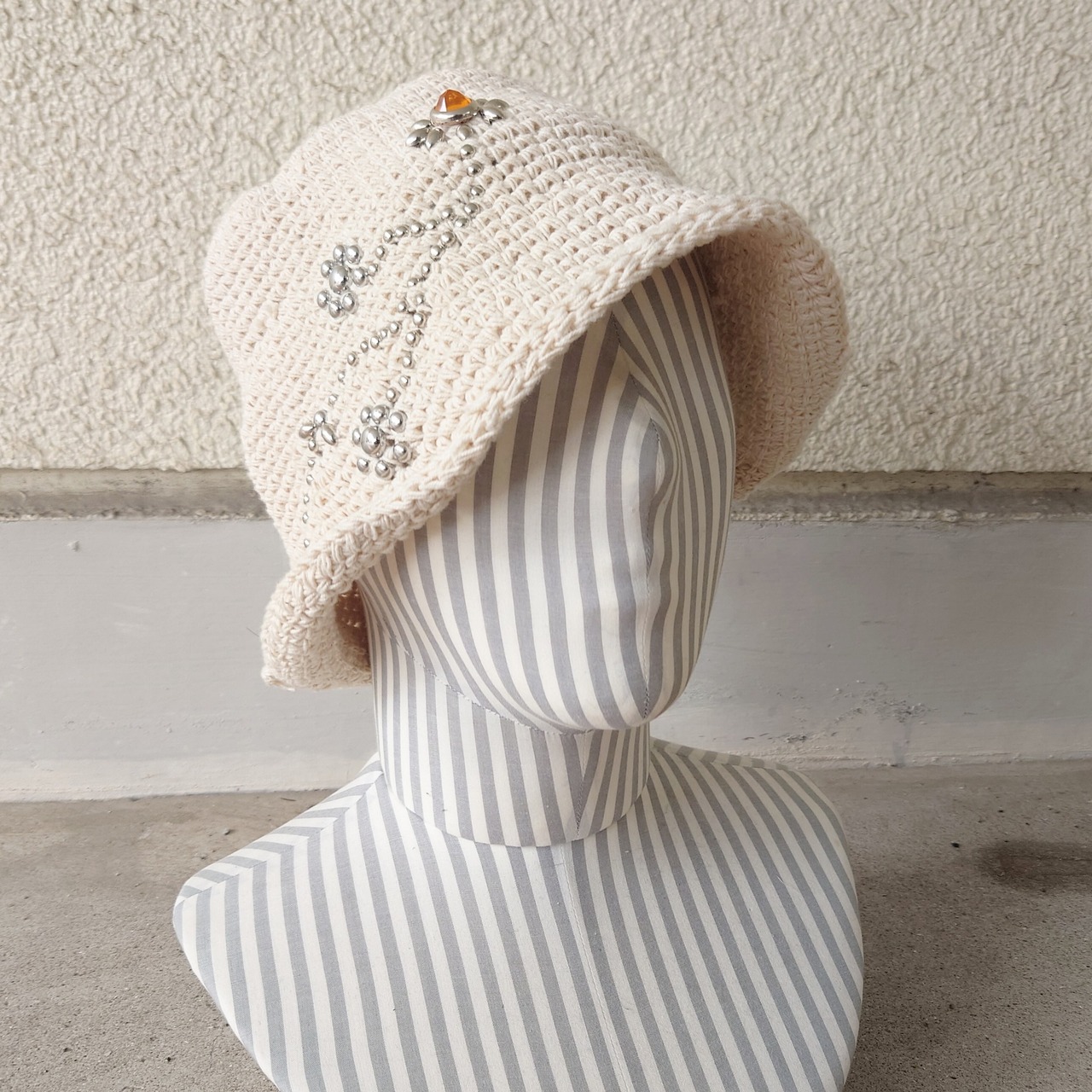 USEDのコットンニットハットにスポッツリメイクを施したデザイン。