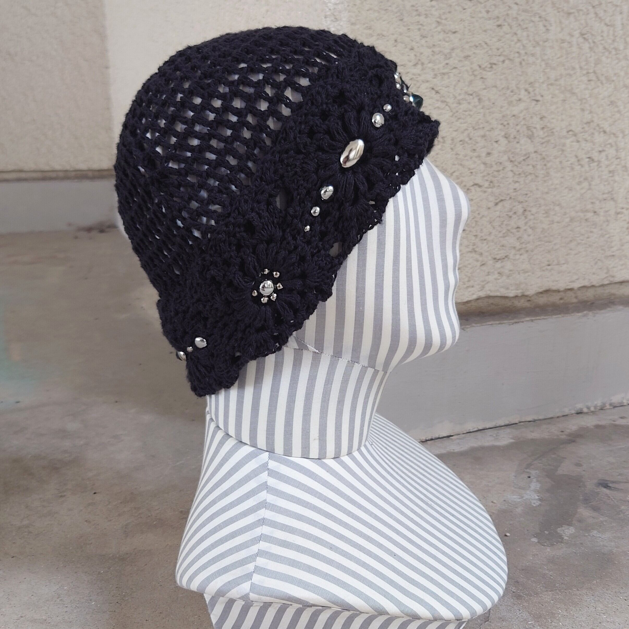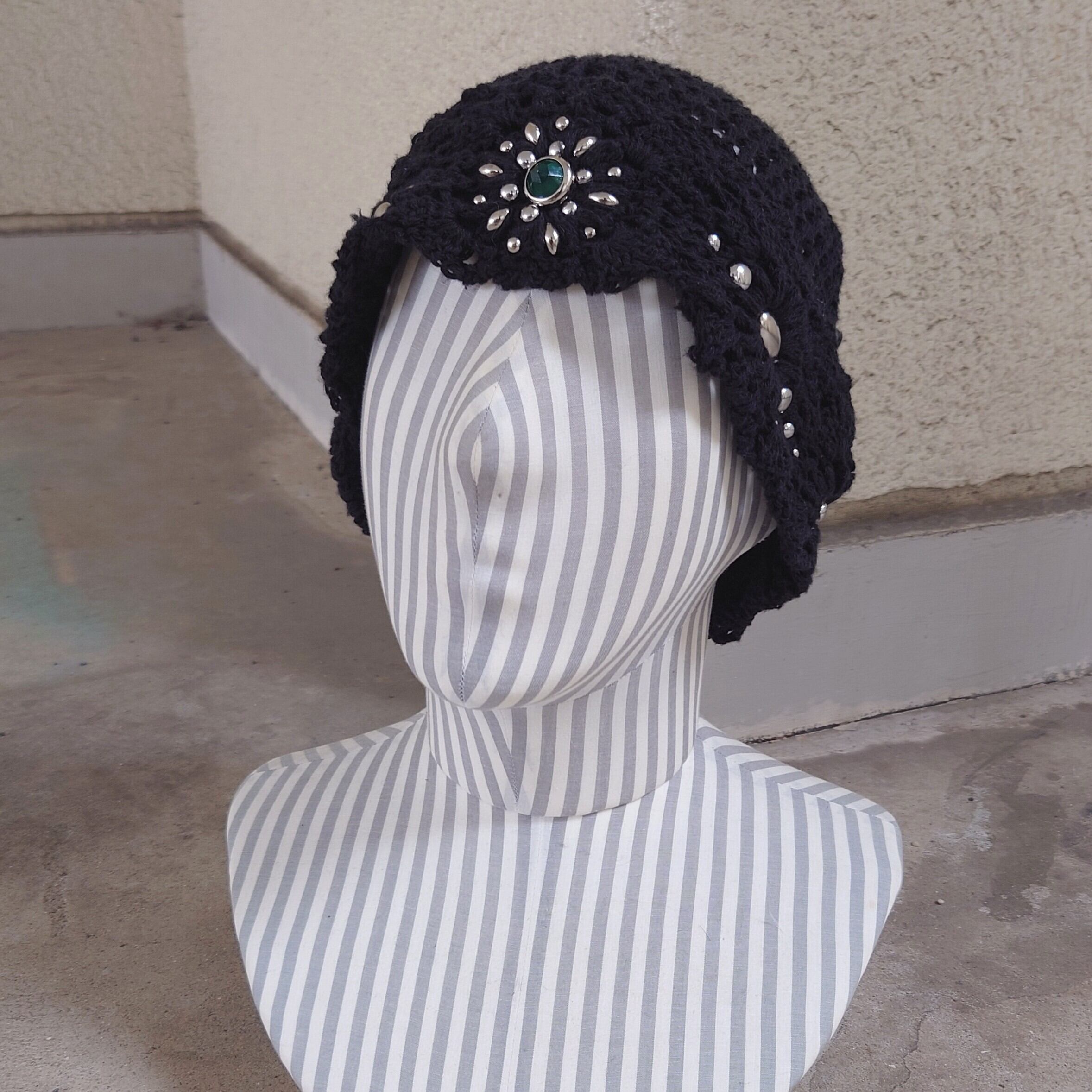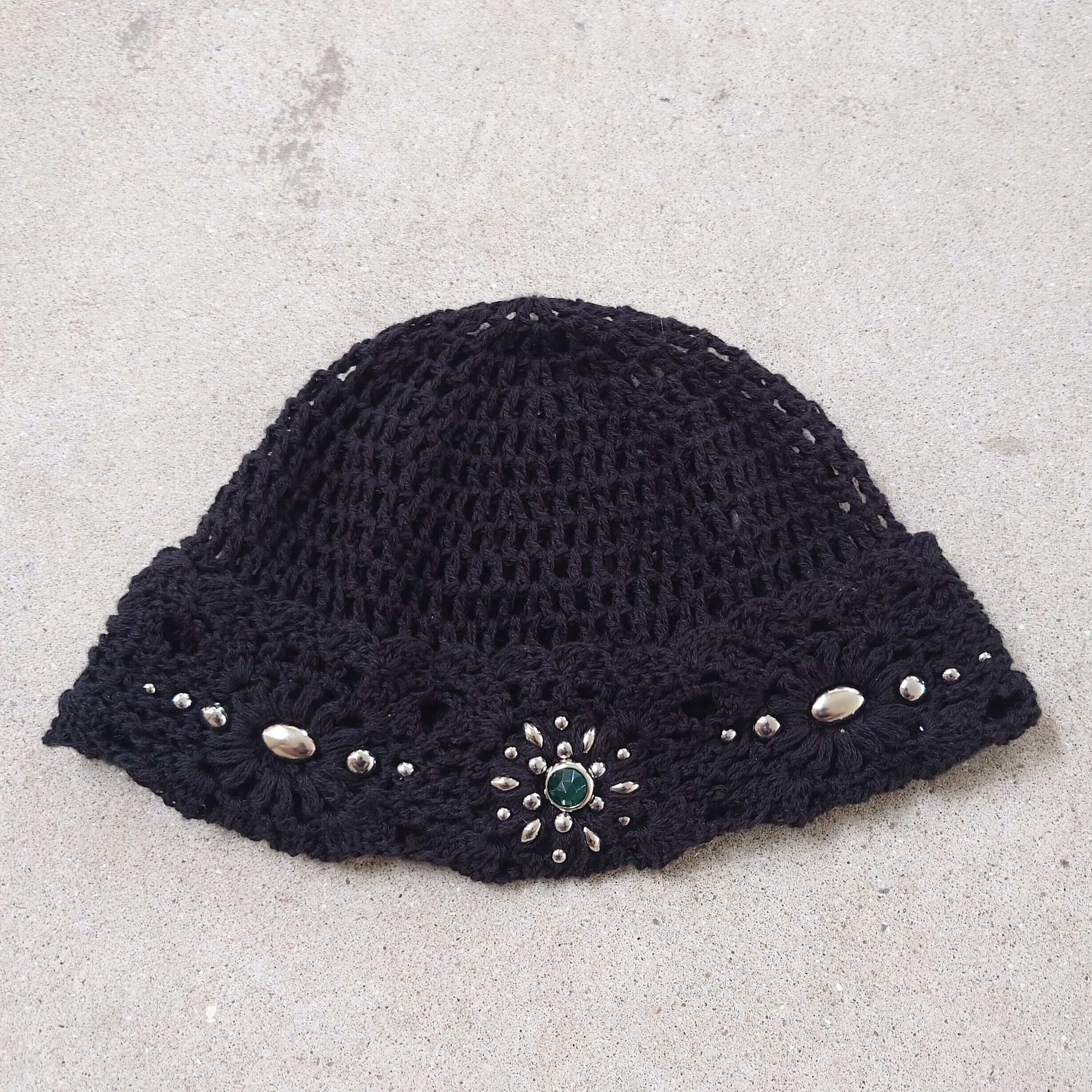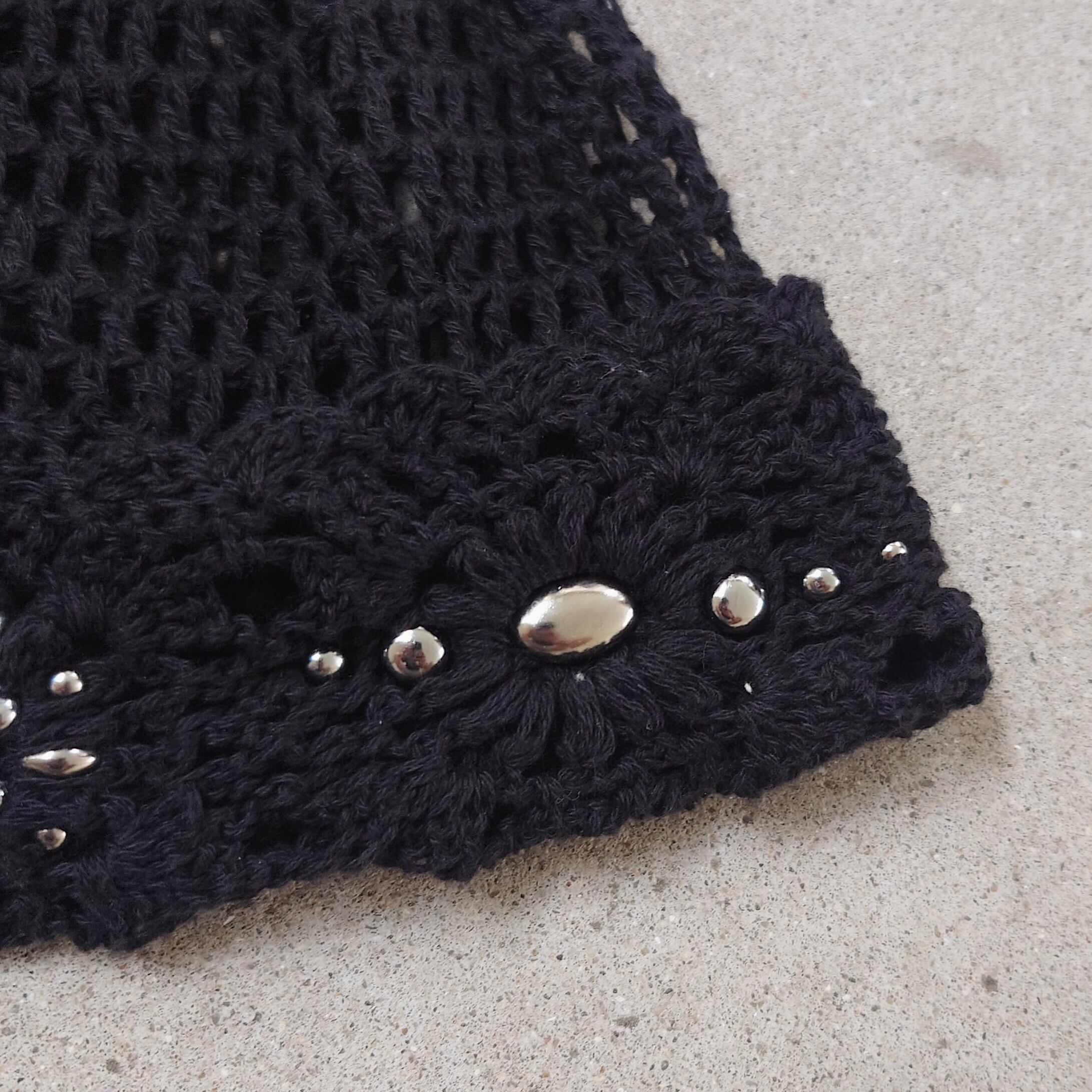 かぎ編みとスタッズのデザインがグランジ、パンクファッションに◎。