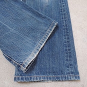 フェード感のあるブルーデニムにキャメルカラーの牛革パッチの入ったデザイン。