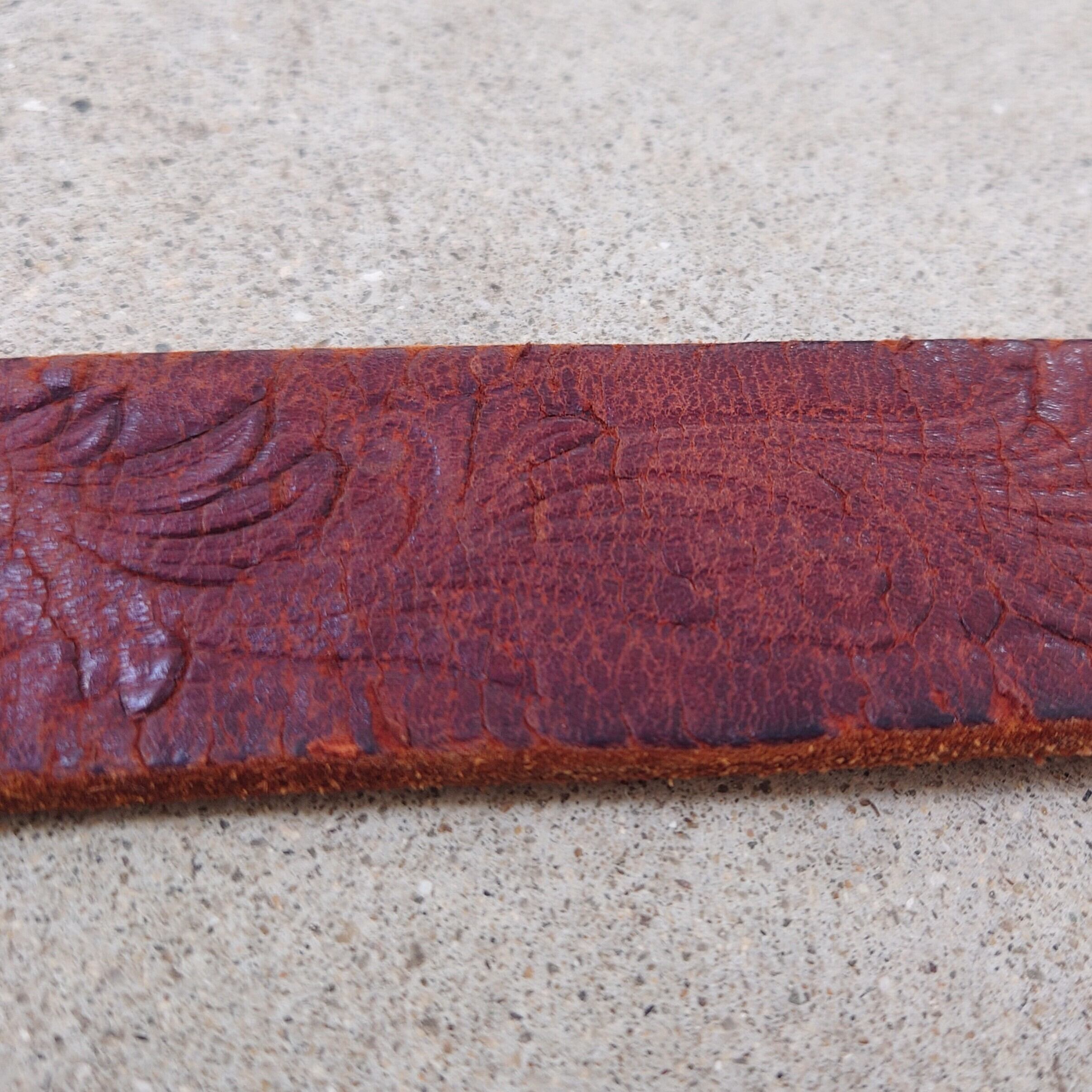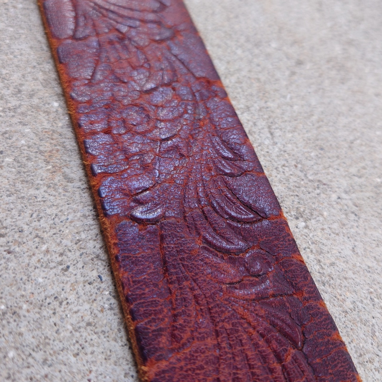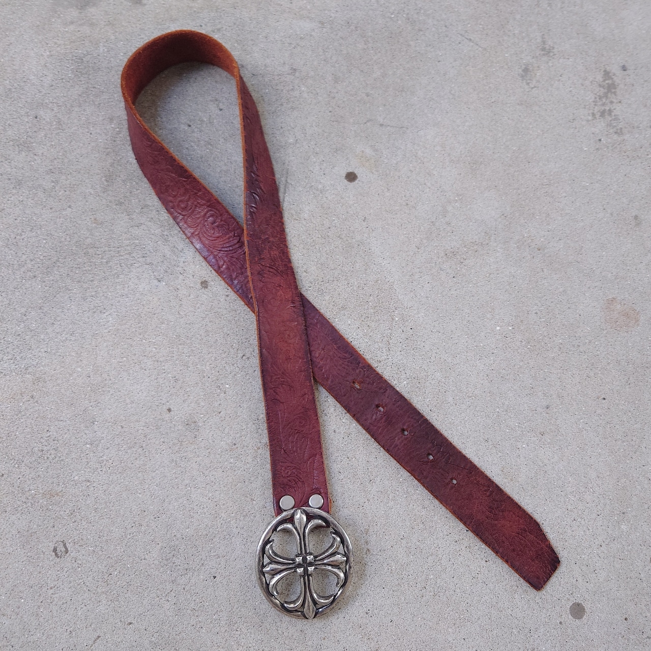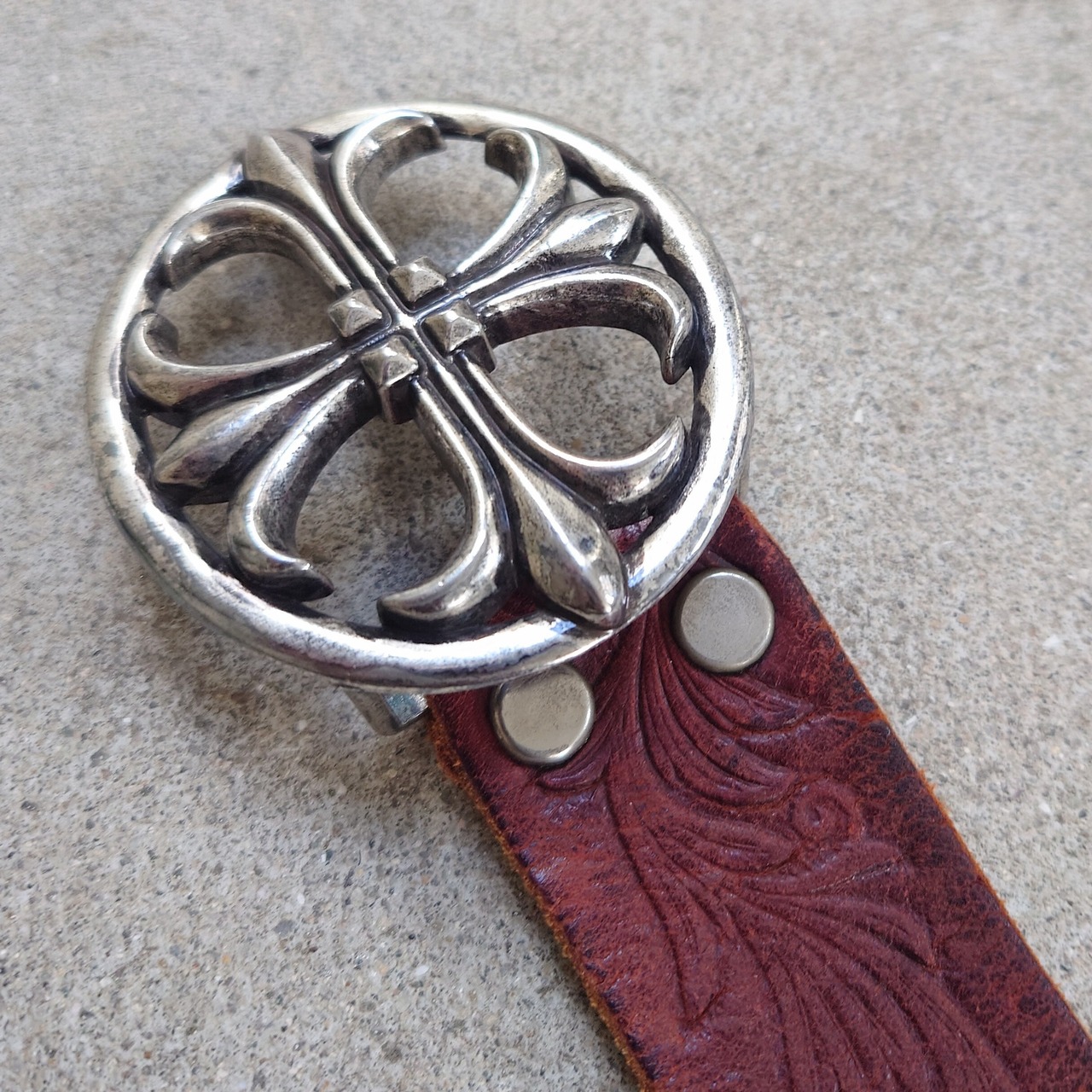 ヴィンテージ クロスバックルカービングレザーベルト。