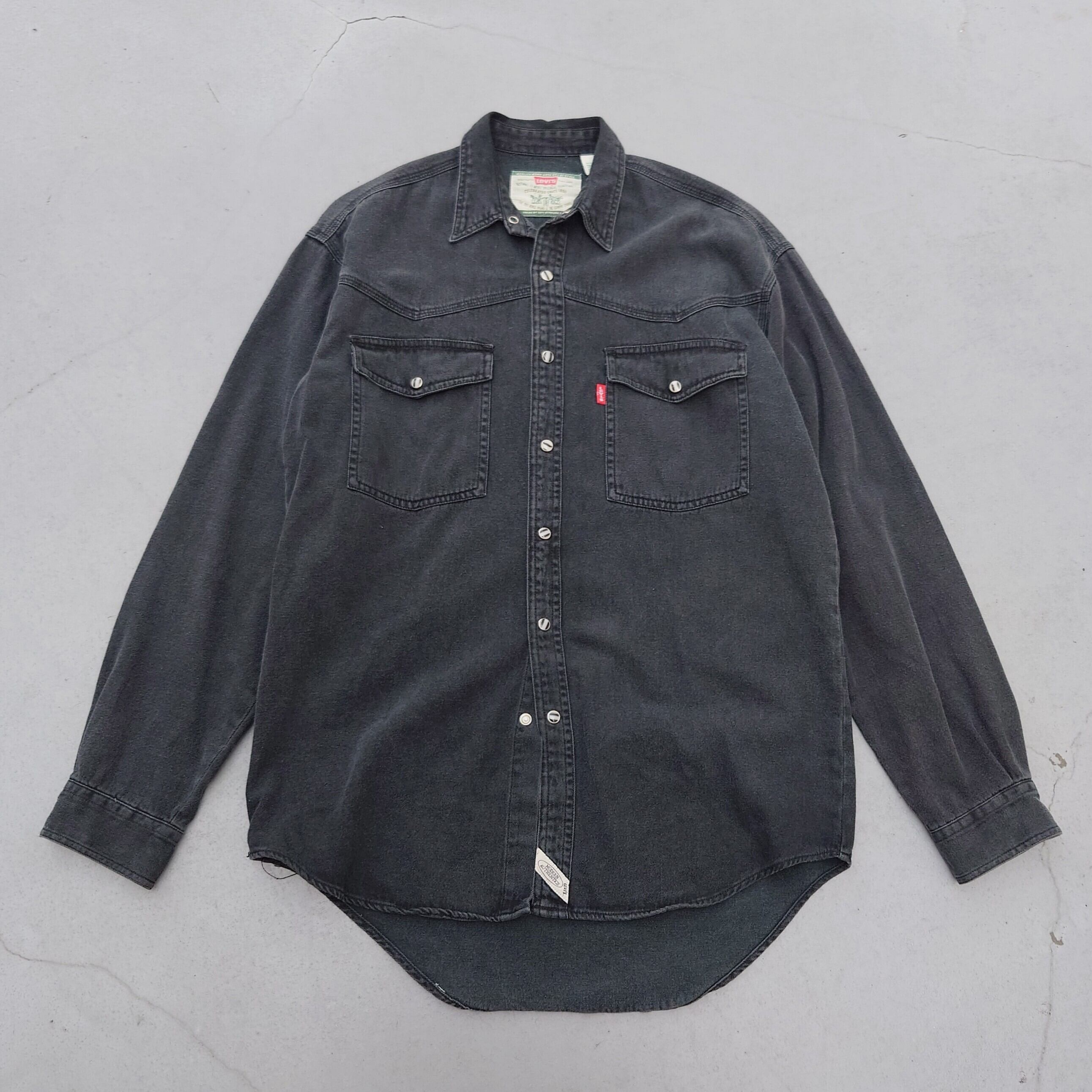 程よく色落ちの入ったブラックデニムにマーブル調のスナップボタンが映えるデザイン。