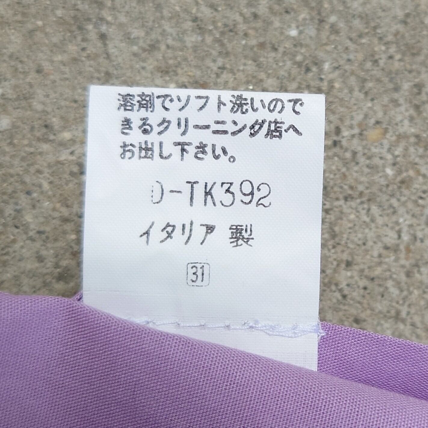 フォーマルな仕立てでありながら目を引くパープルのカラーが特徴的な一着。