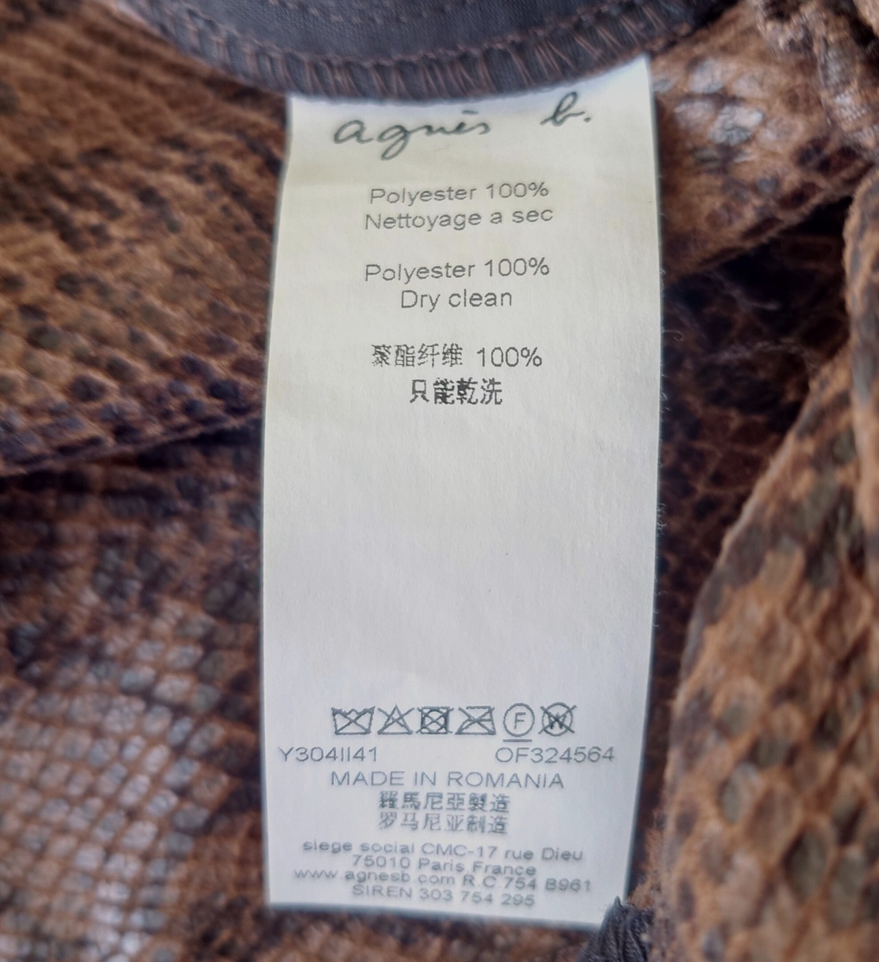 agnes b ルーマニア製 パイソンパンツ。