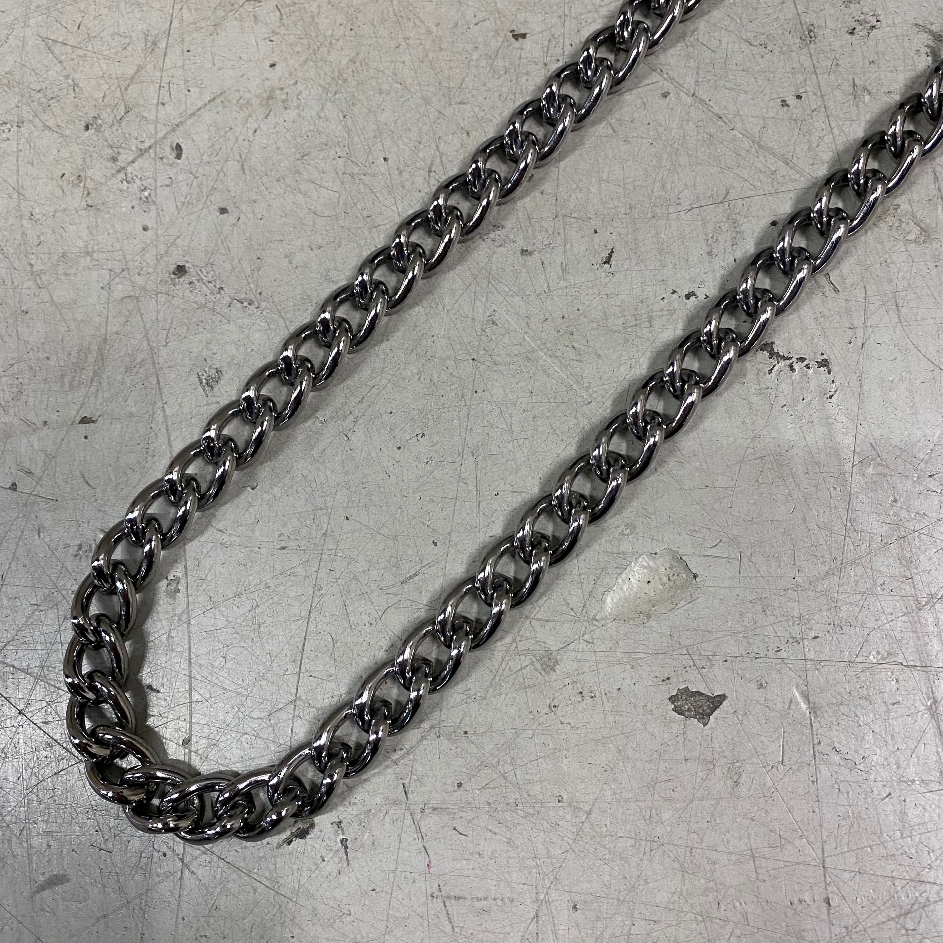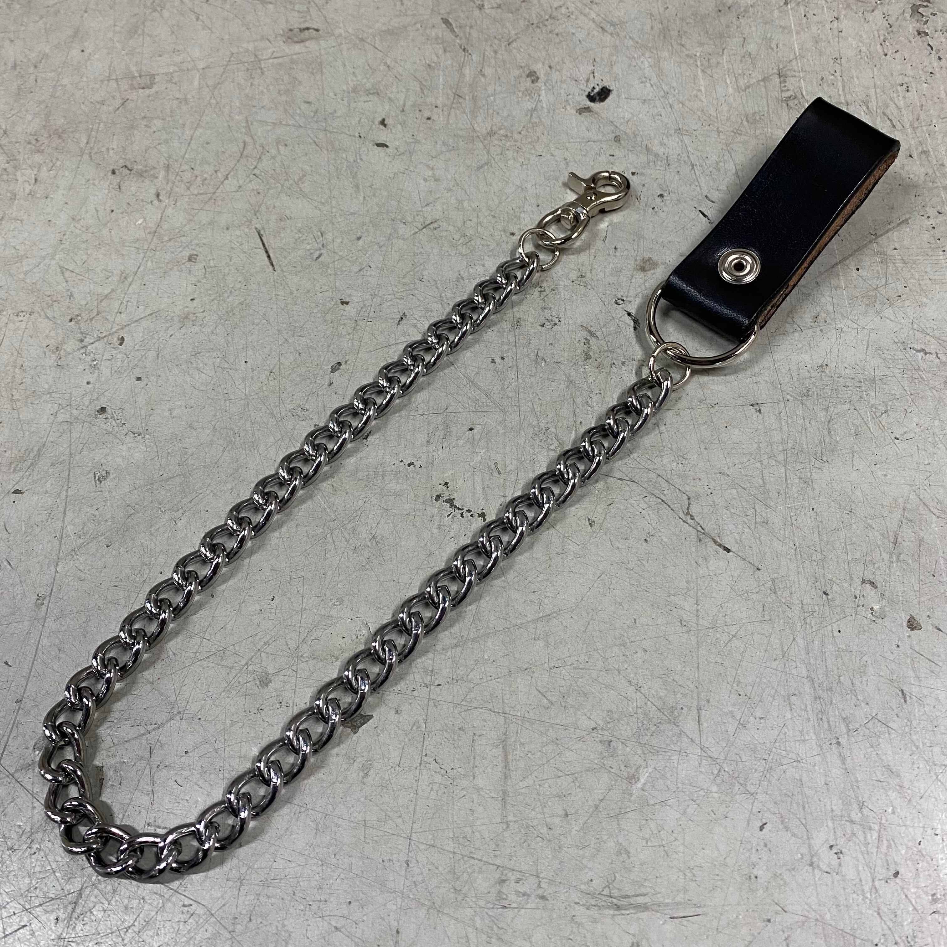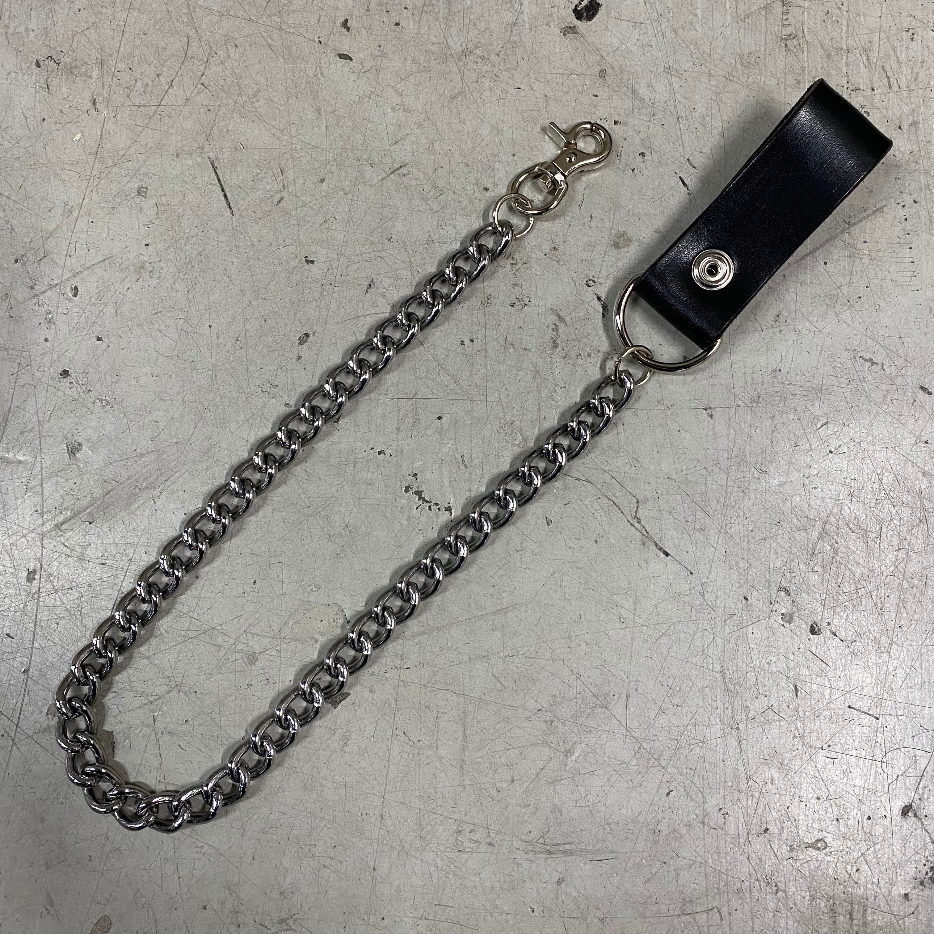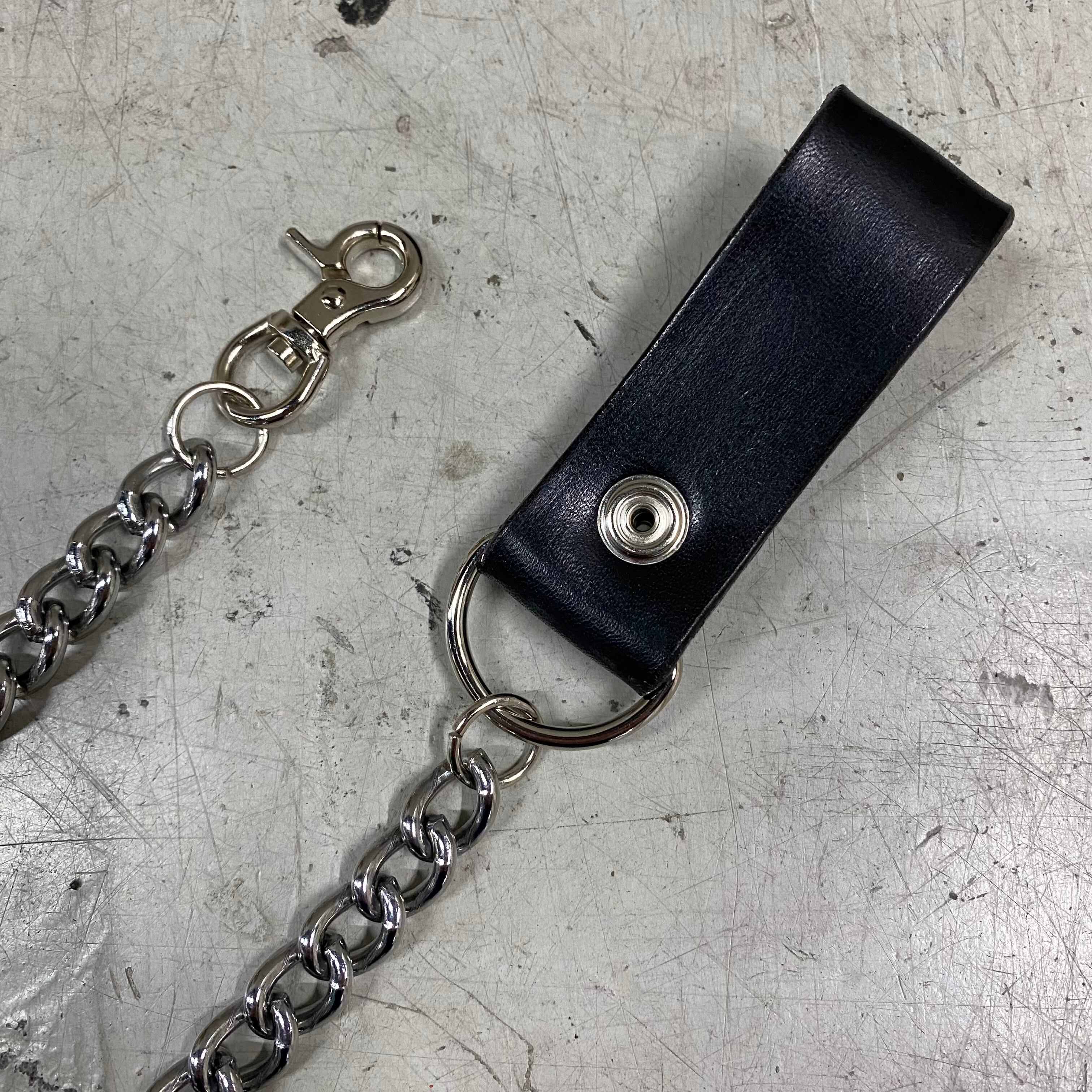 フラワースタッズを施したレザーベルトループ付きのウォレットチェーン。