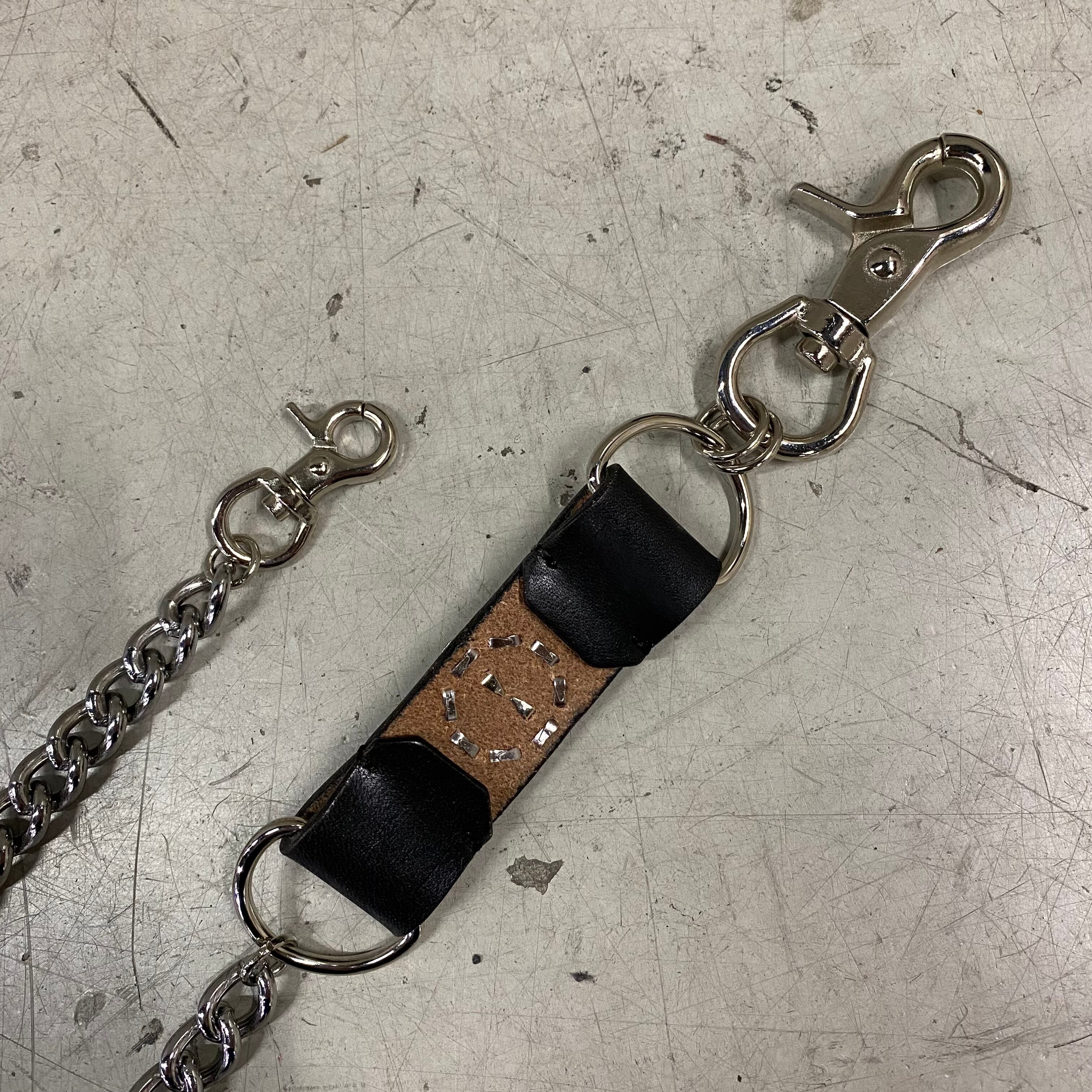 フラワースタッズを施したレザーホルダー付きのウォレットチェーン。