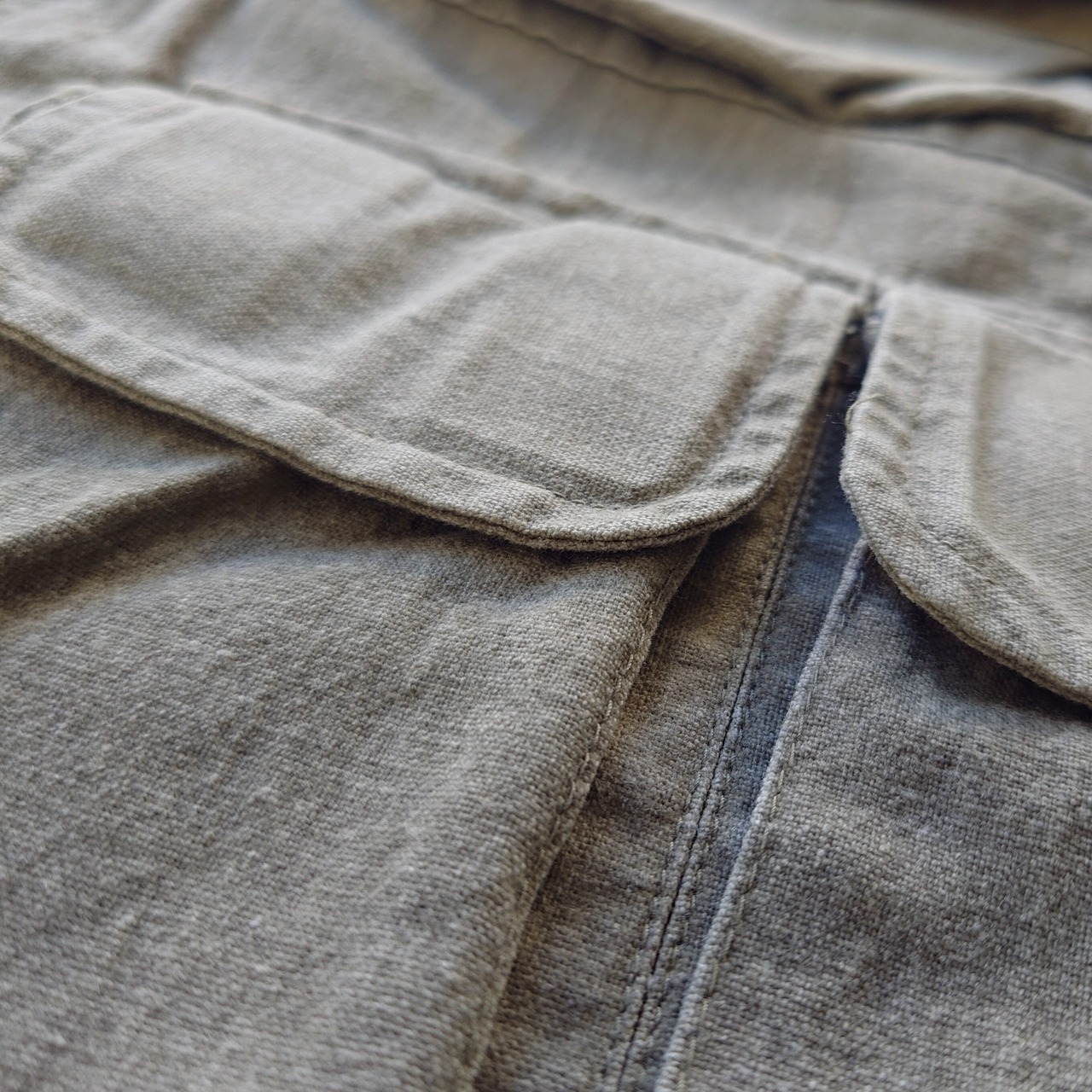 コットン100%のフェード感のある生地感はニットやスウェットのレイヤードに◎。
