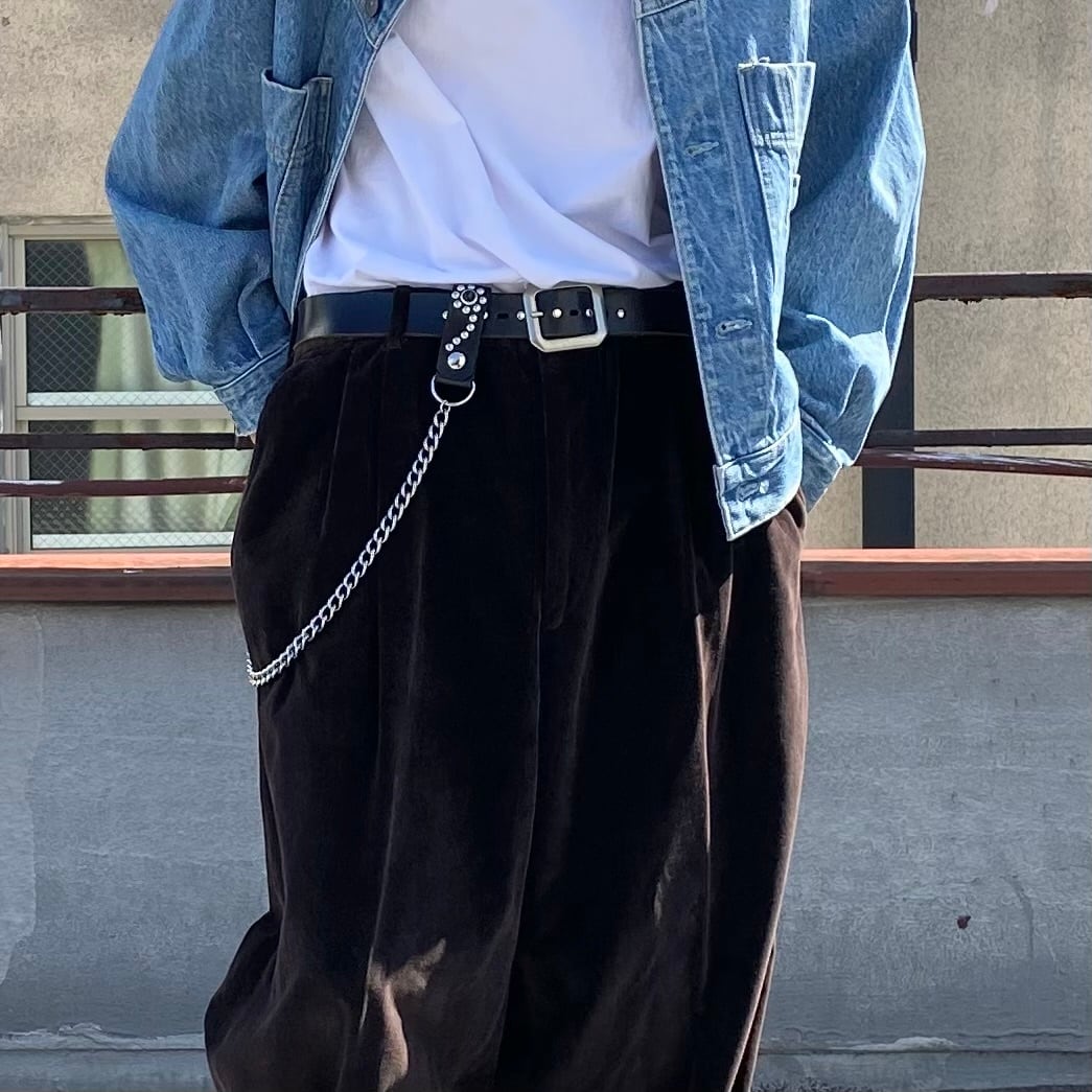 フラワースタッズを施したレザーベルトループ付きのウォレットチェーン。