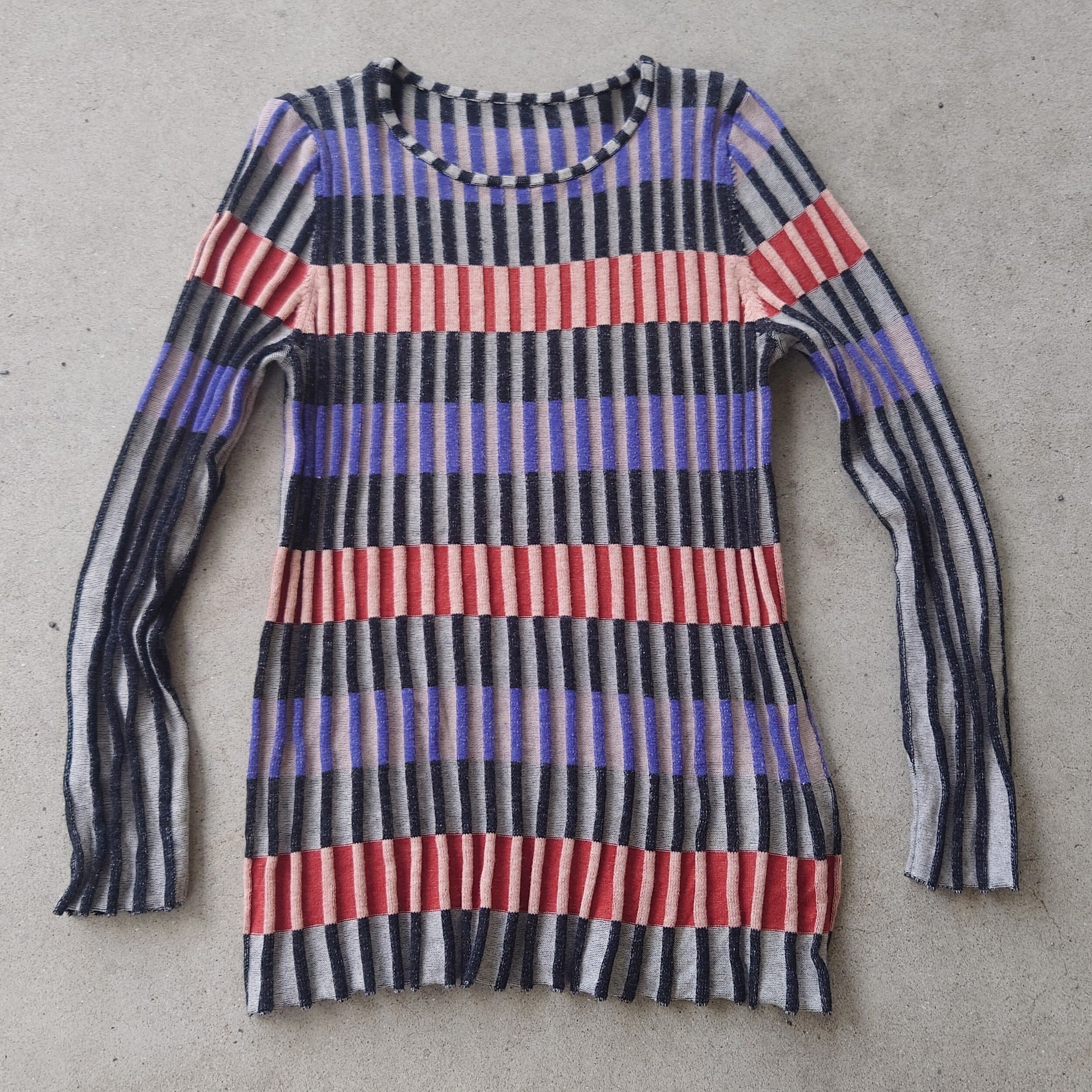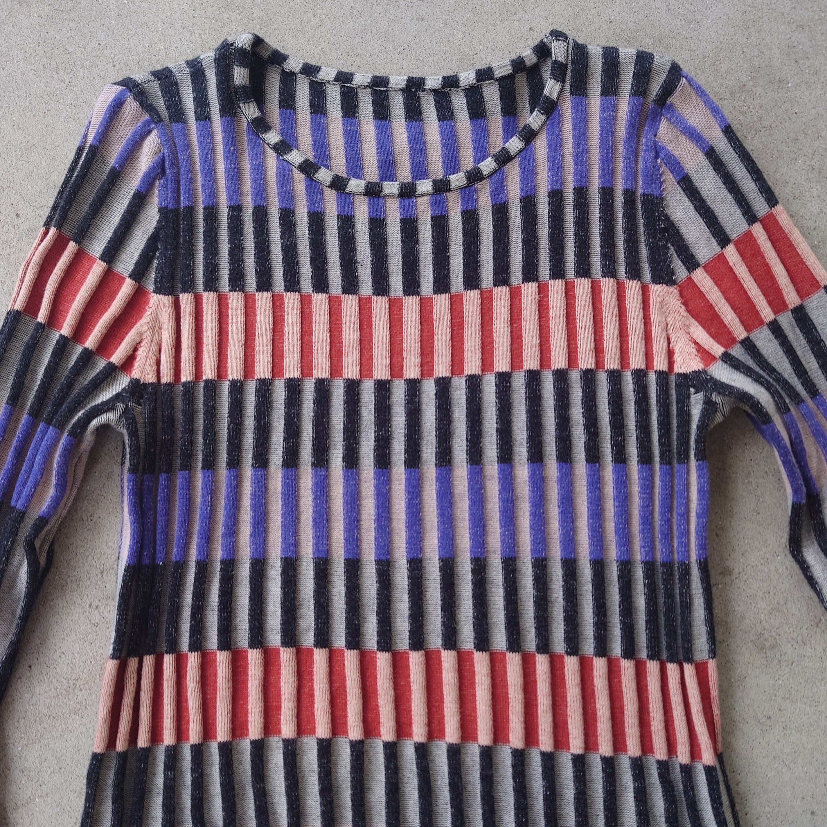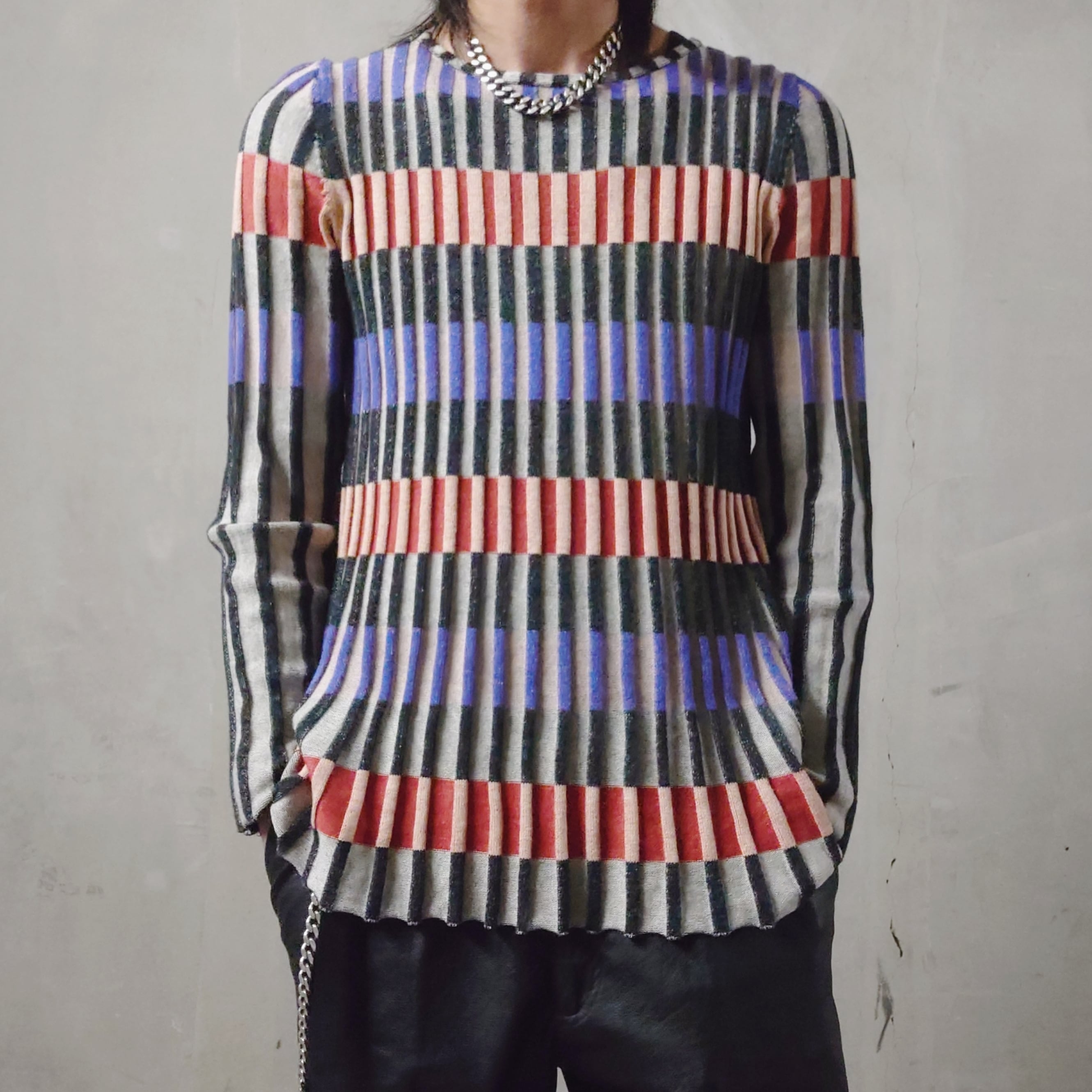 縦畝とボーダー柄の立体感のあるデザインが特徴。