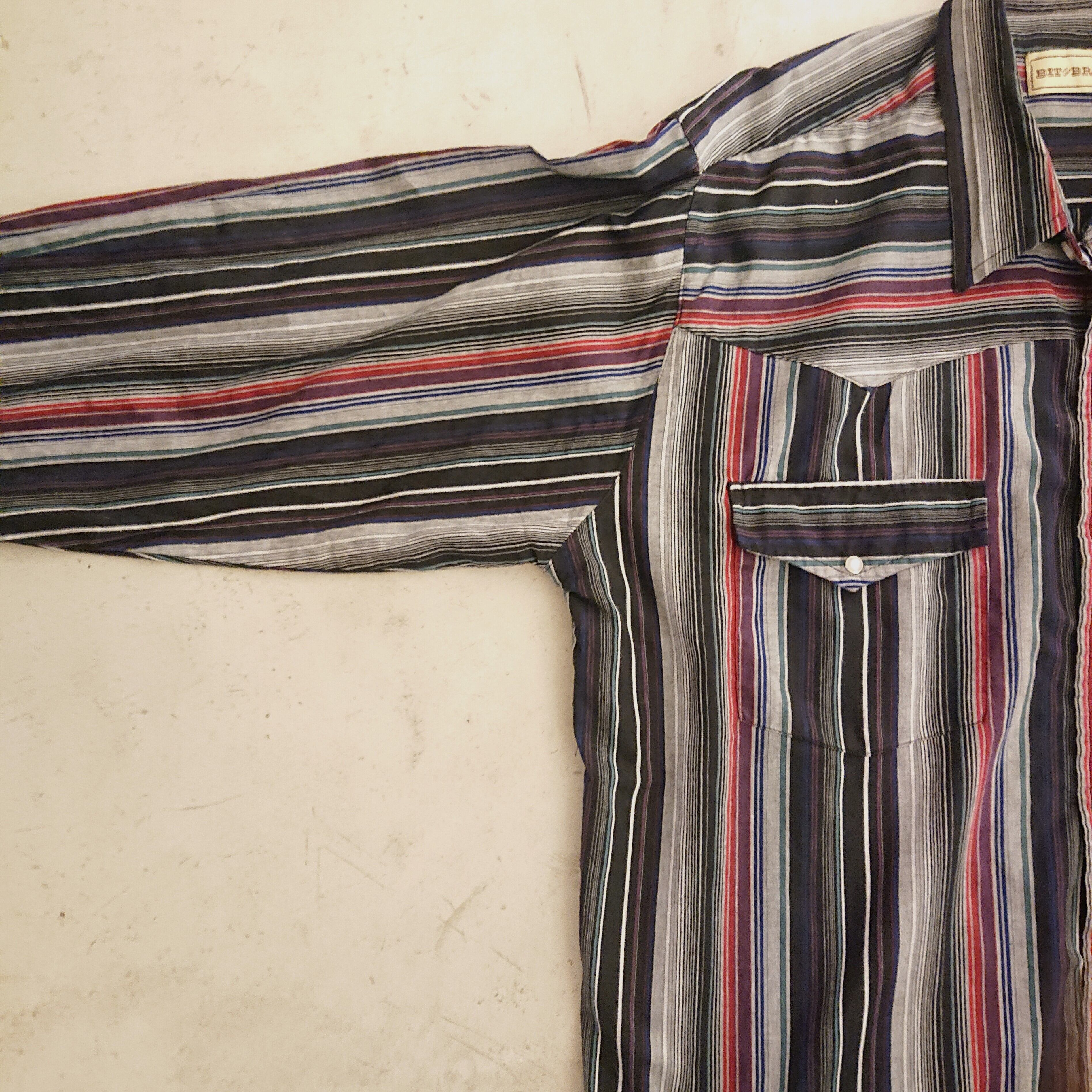 レトロな配色が目を引くマルチストライプのウエスタンシャツ。