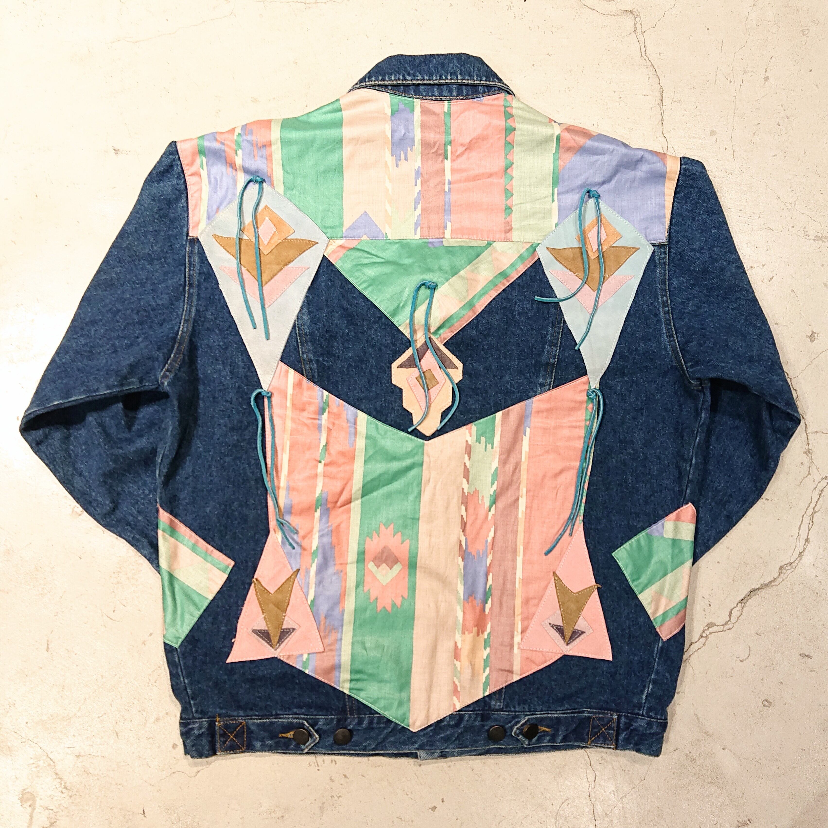 SPORT DECO レザーフリンジパッチワークデニムジャケット。