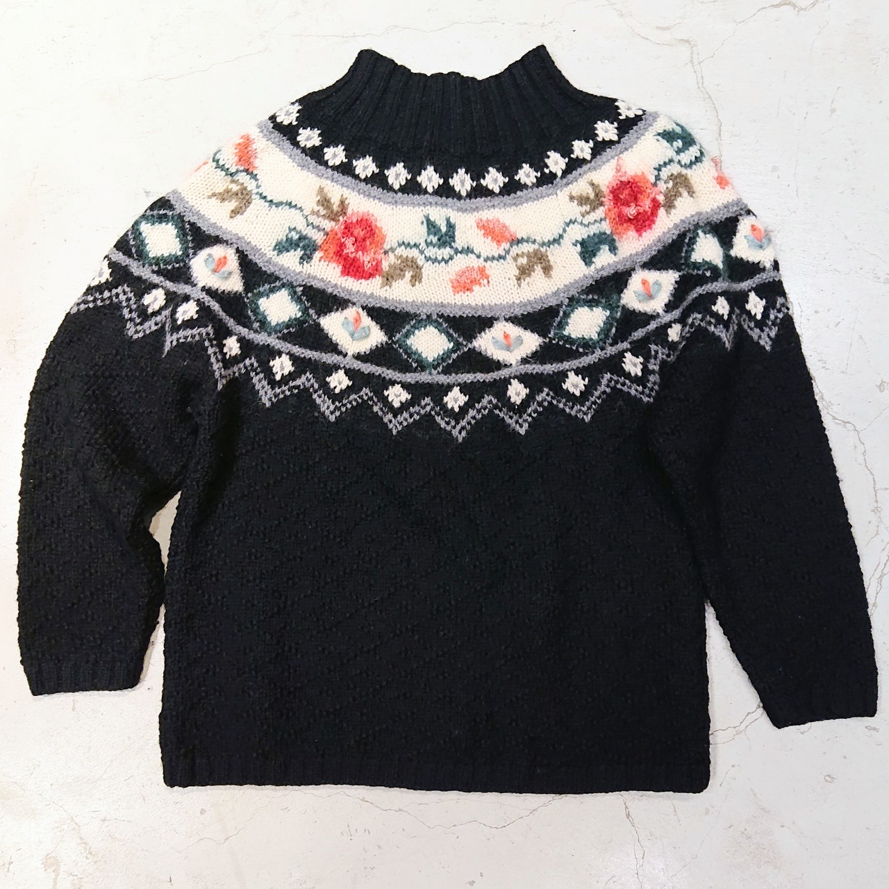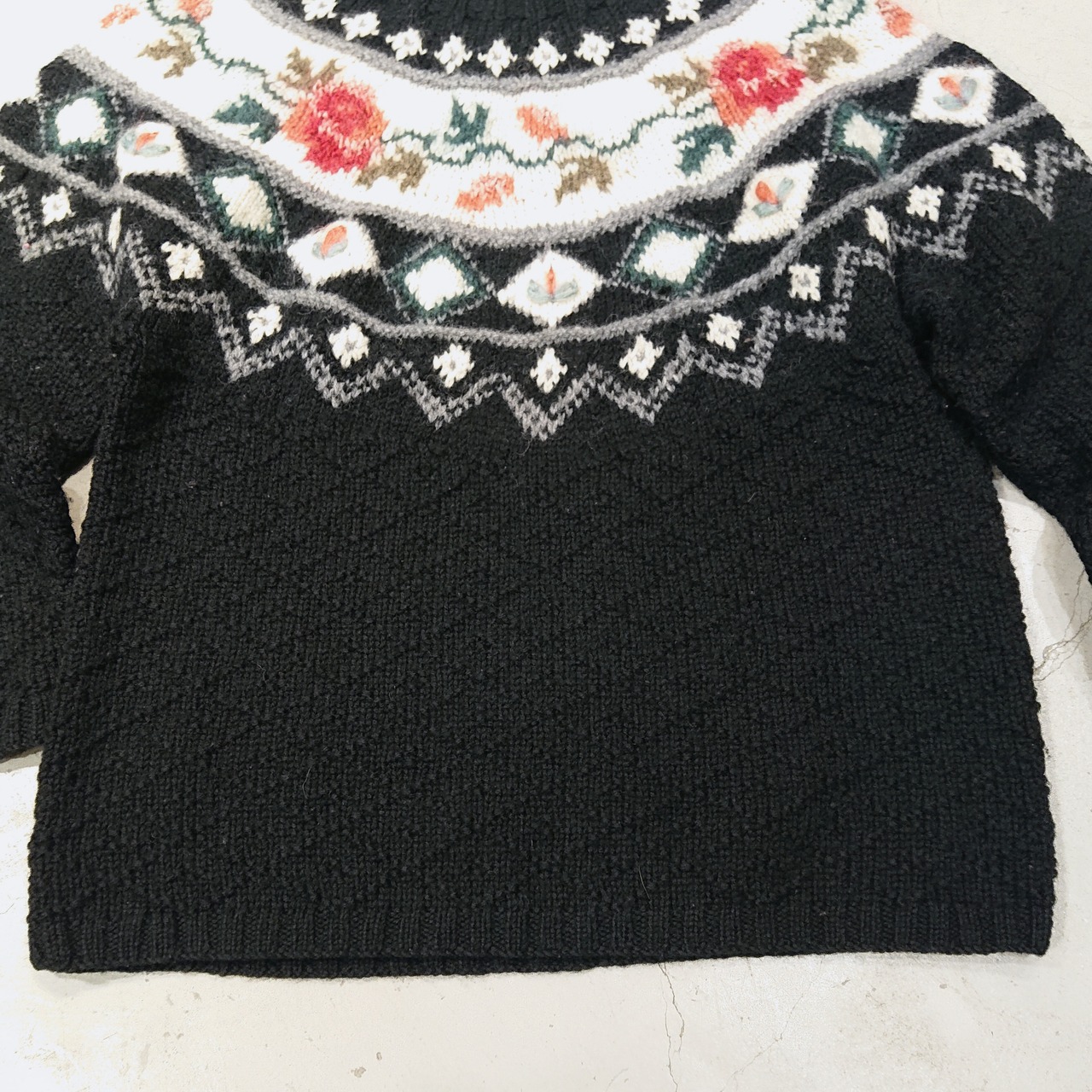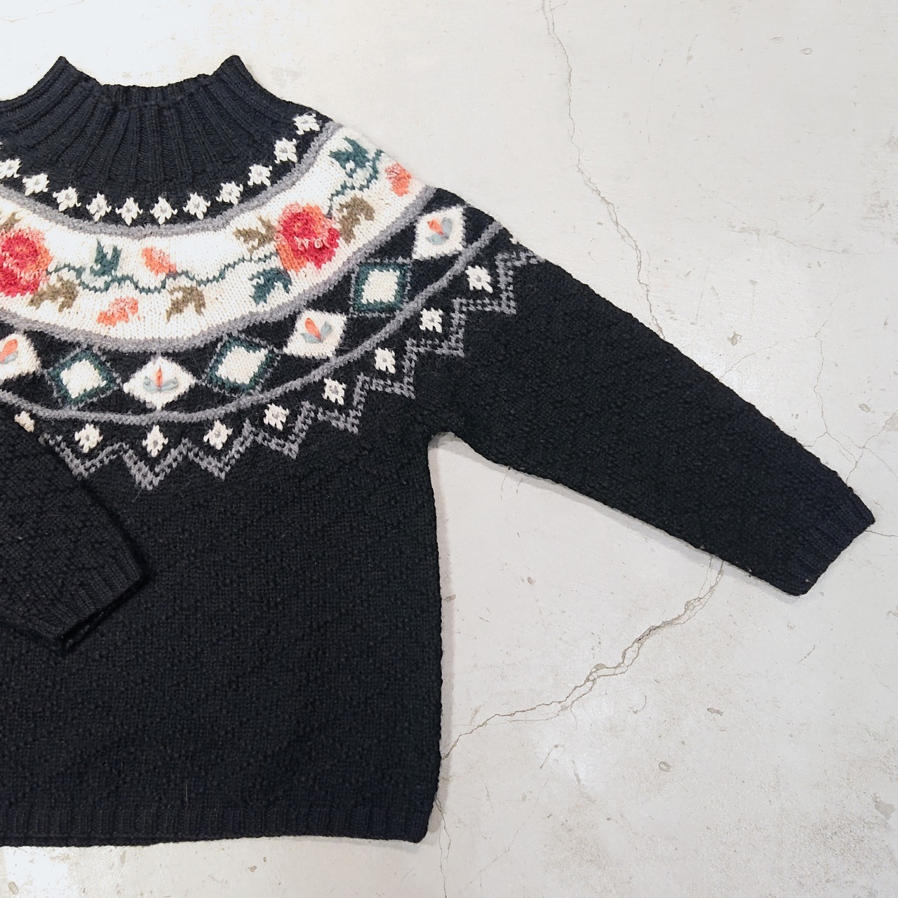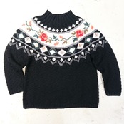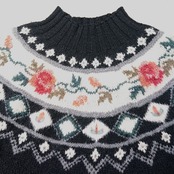 薔薇やつぼみとオーナメントデザインが手編みによって施されたデザインが特徴。