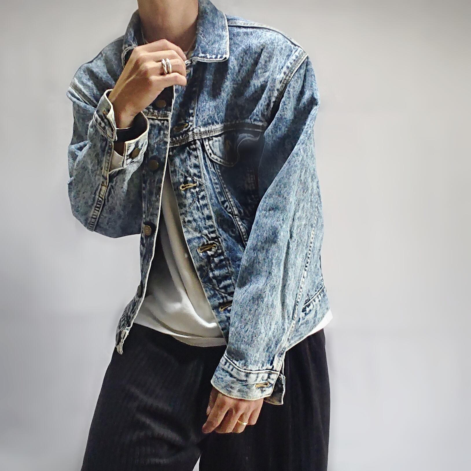 BOBSON ケミカルウォッシュドデニムジャケット。