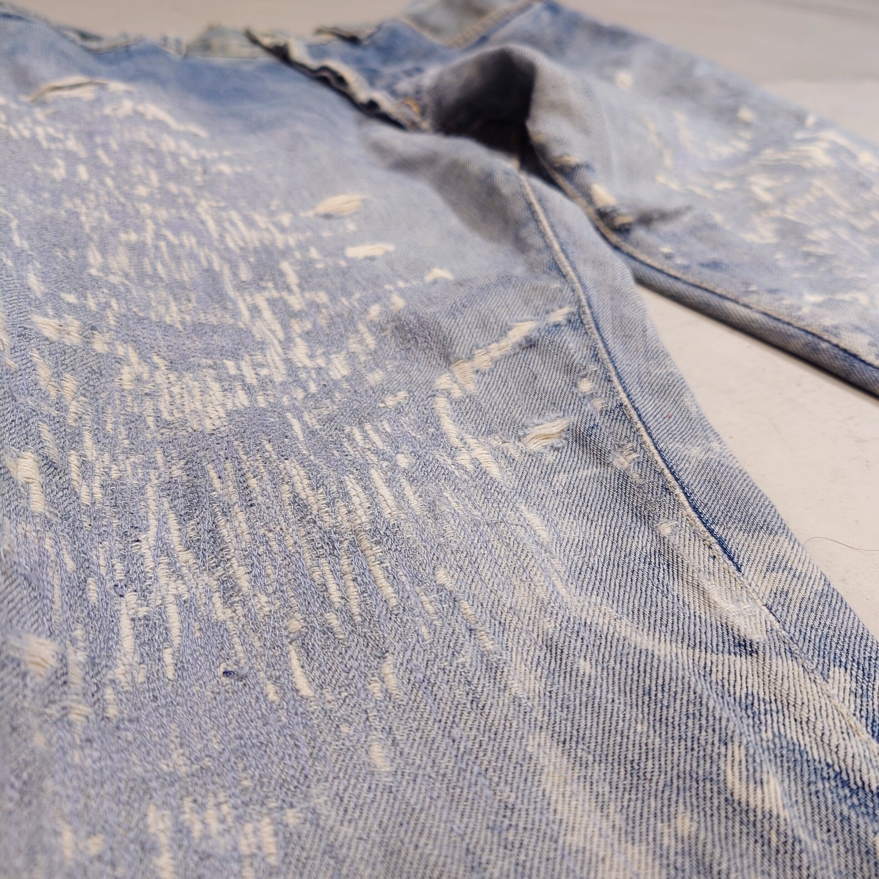 裾にはブリーチによる色落ちが入ったグランジ感溢れる一本。