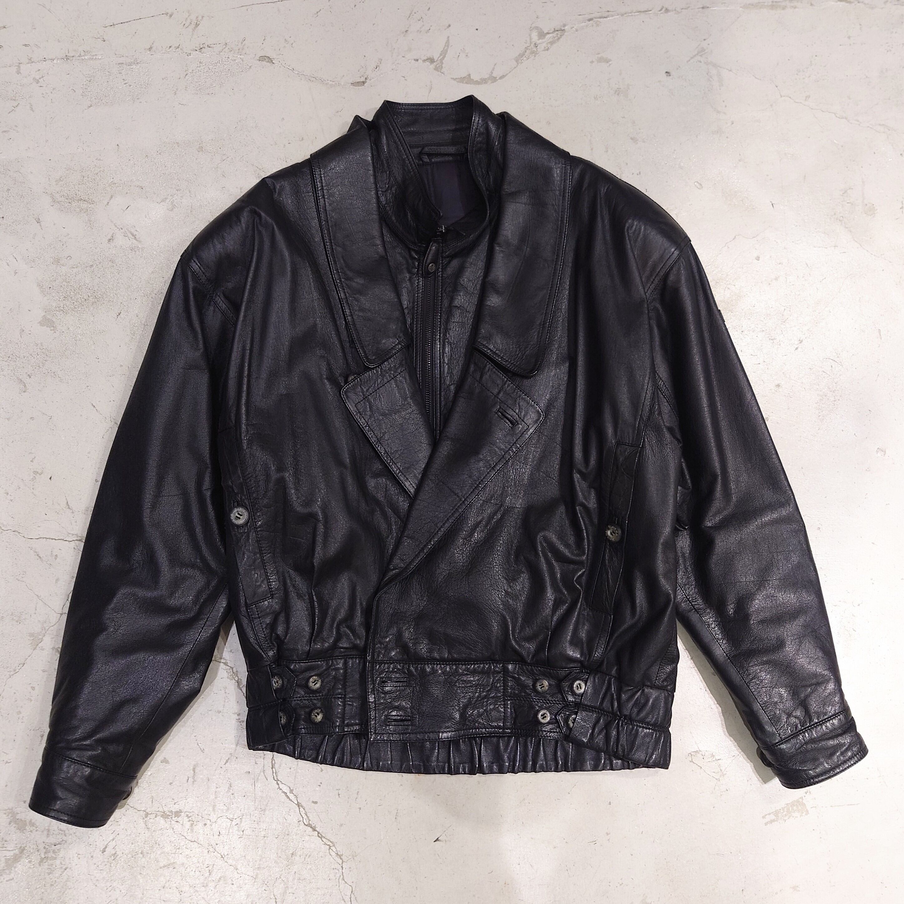 BLACK PIA- LAYERED HI-NECK LEATHER JKT BLK