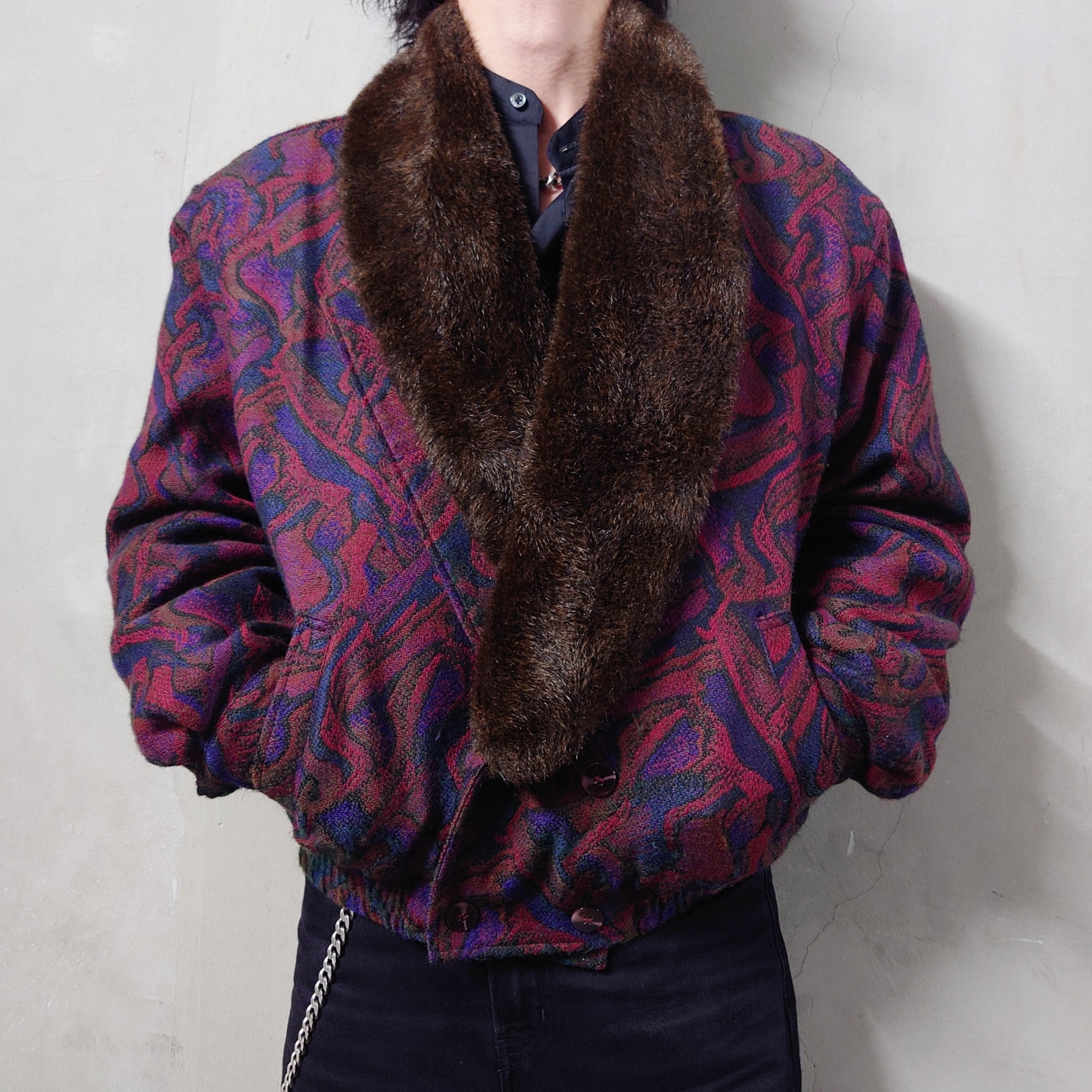 LAMA LUCENT 総柄ウールブルゾンジャケット。