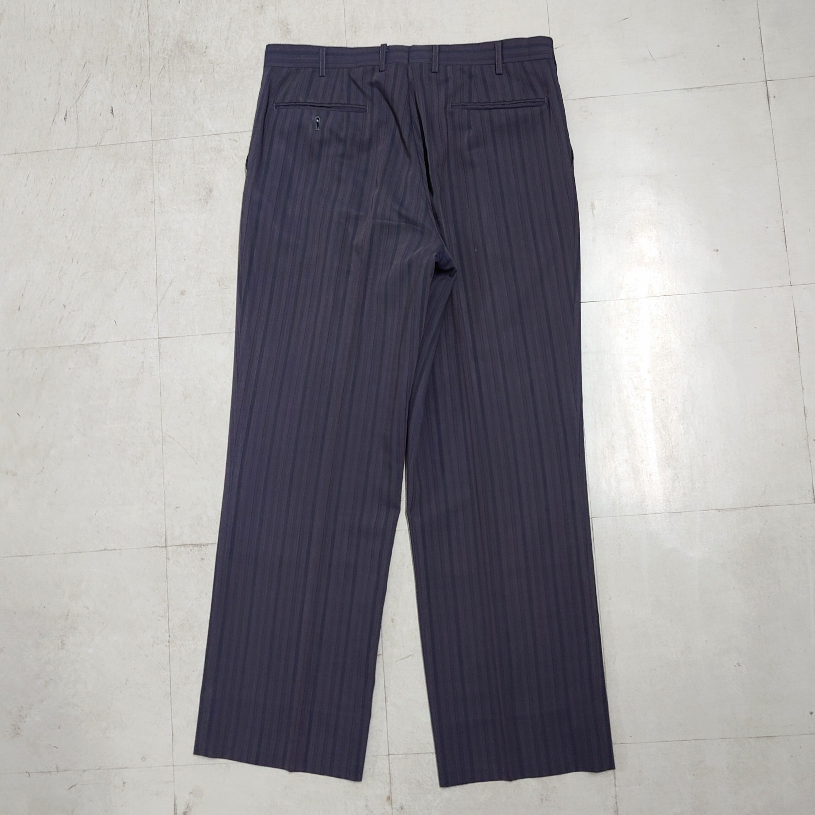 グレーベースの生地にヴィリジアン、パープルカラーのストライプが入ったデザイン。