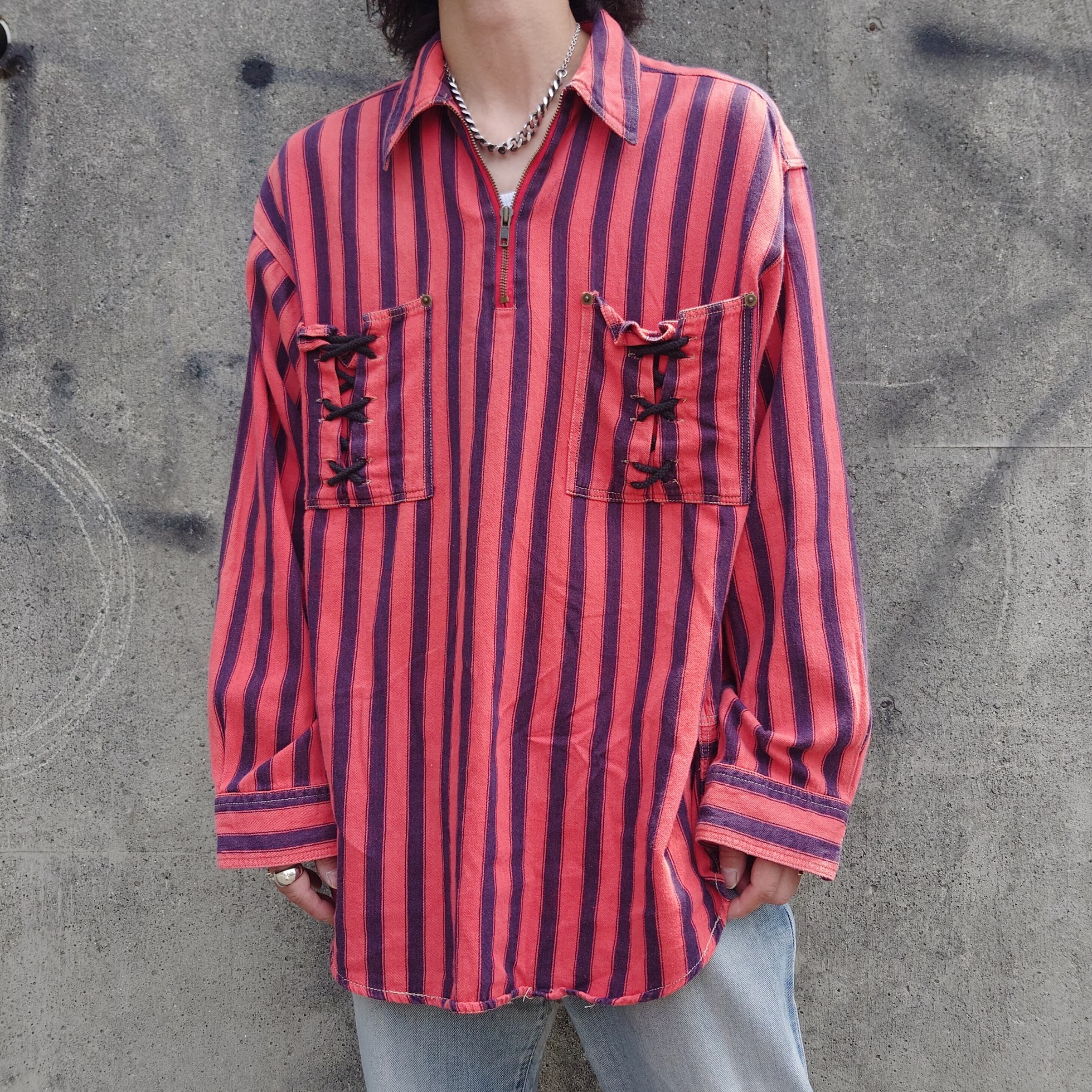 Dodgest ハーフジップストライププルオーバーシャツ。