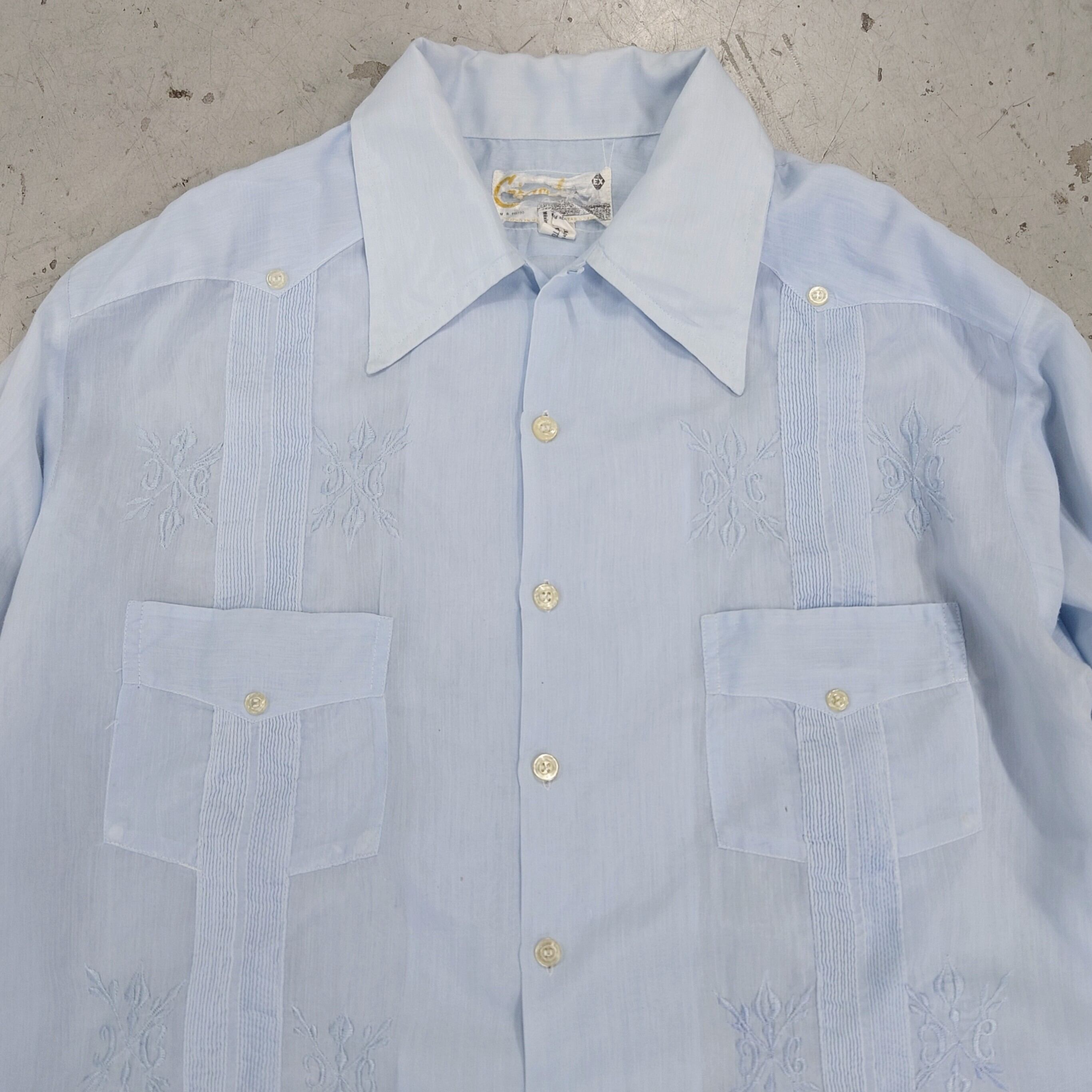キューバシャツ特有の刺繍と4ポケットのデザインが特徴。