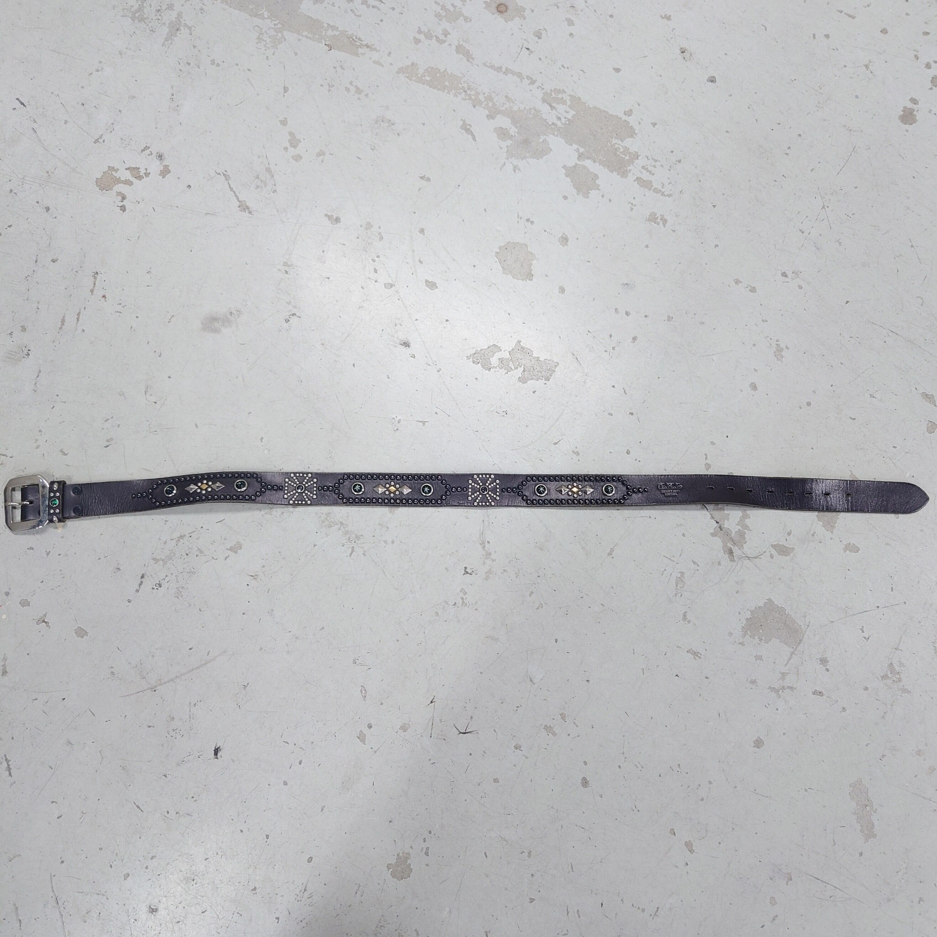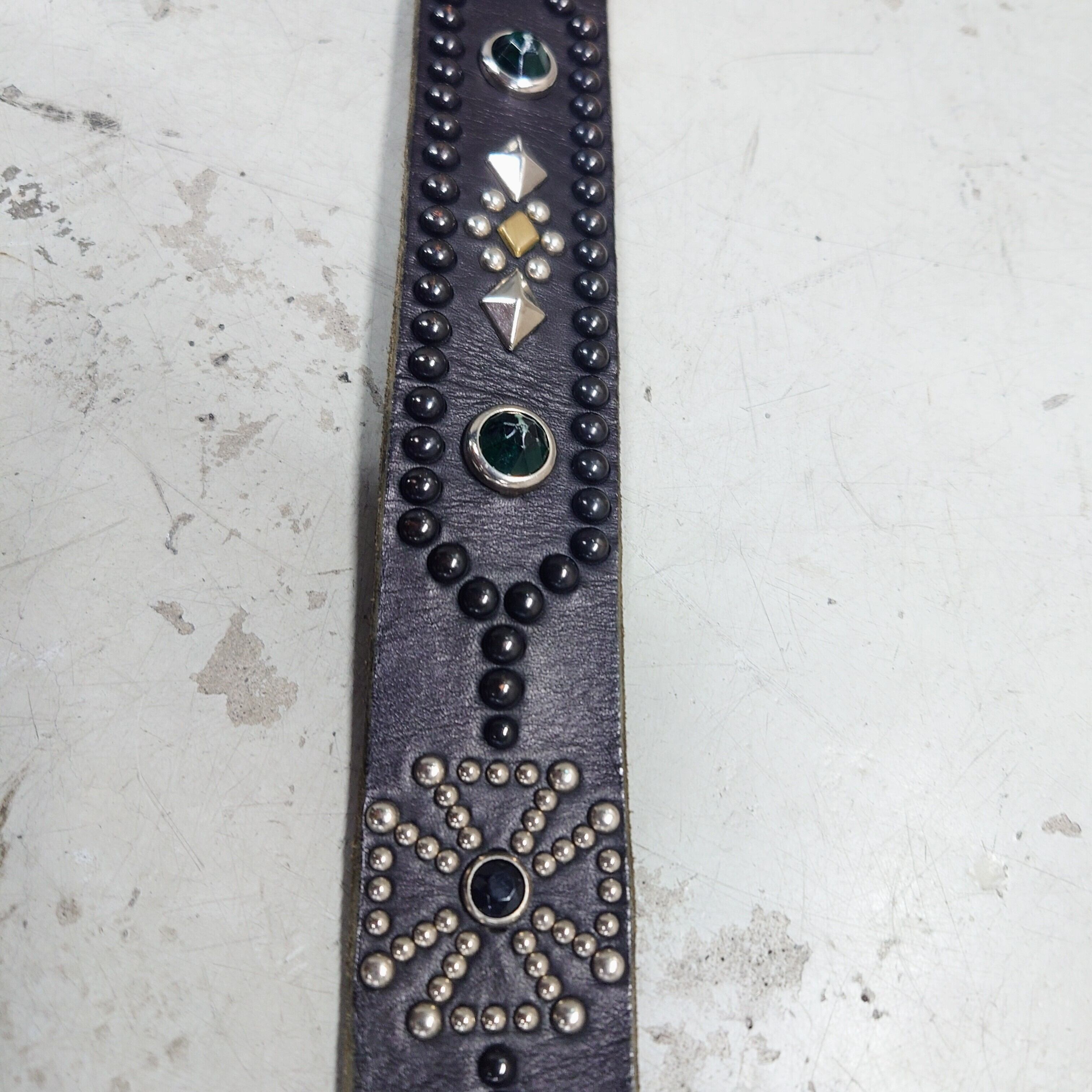ピラミッドスタッズやストーンスタッズといった数種類のカシメで装飾が施されております。