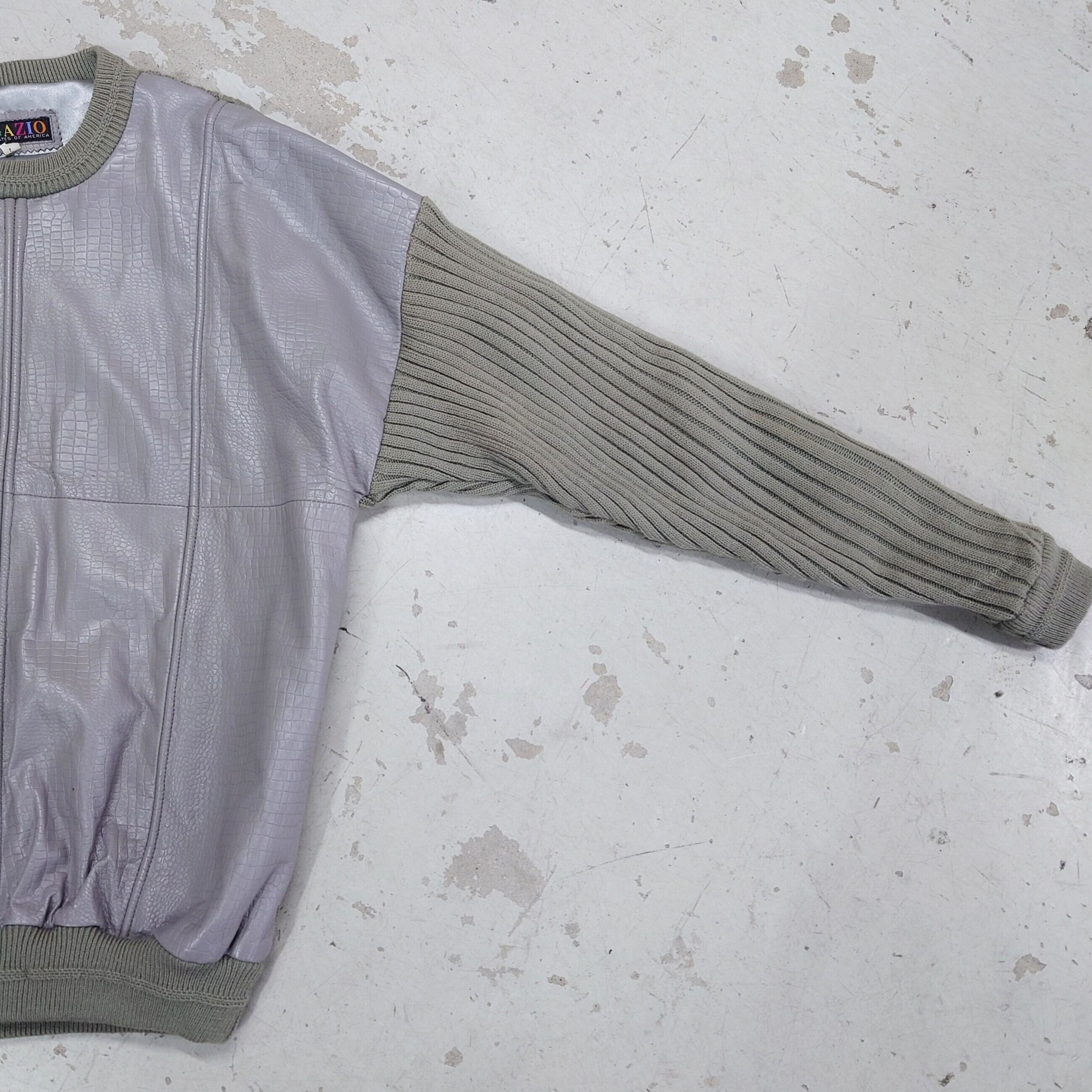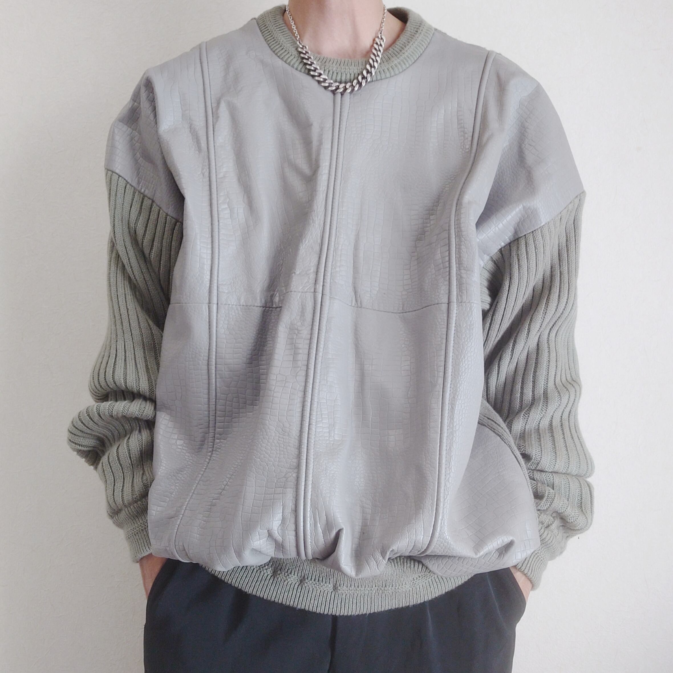 前身頃に大胆に付けられた黒子型押しのレザーが特徴。