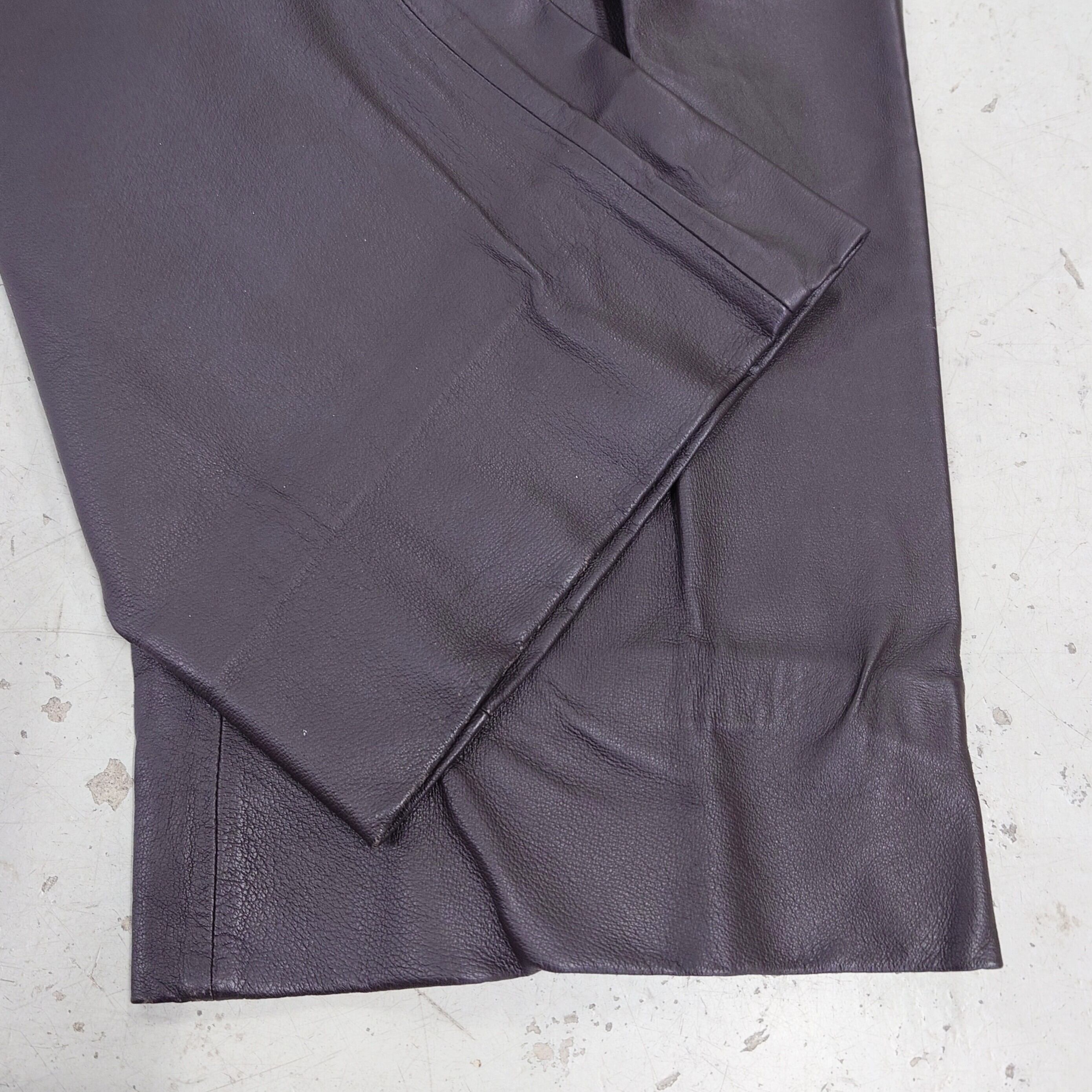 落ち着いたダークブラウンのカラーがレザーパンツでありながらナチュラルな印象に。