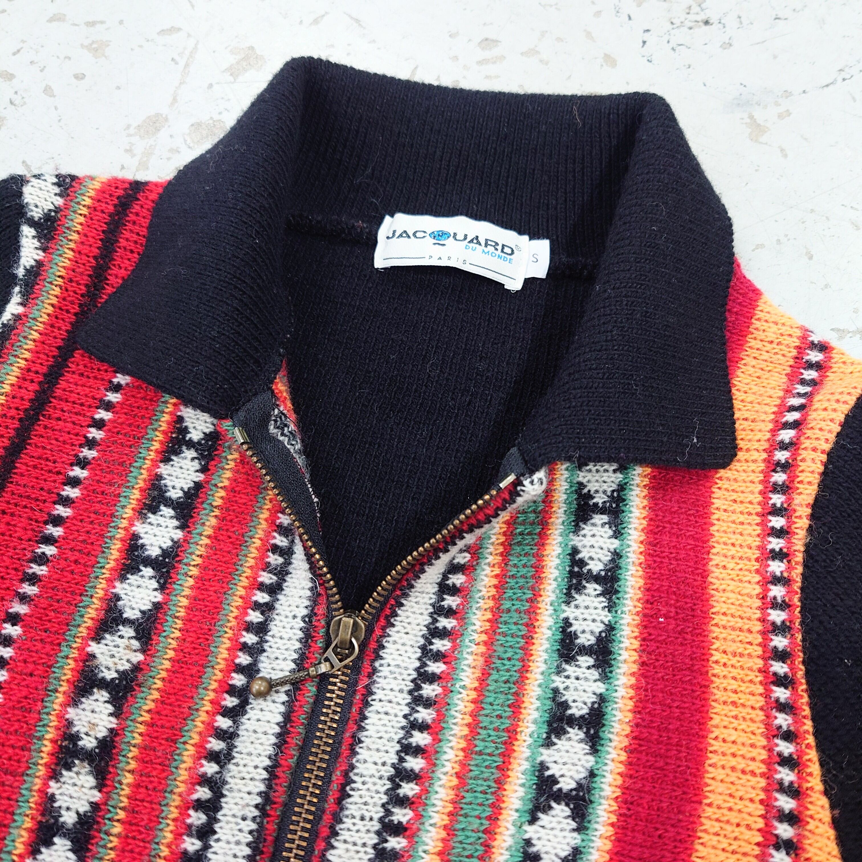 JACOUARD DU MONDE ラグ柄ジップアップニット。