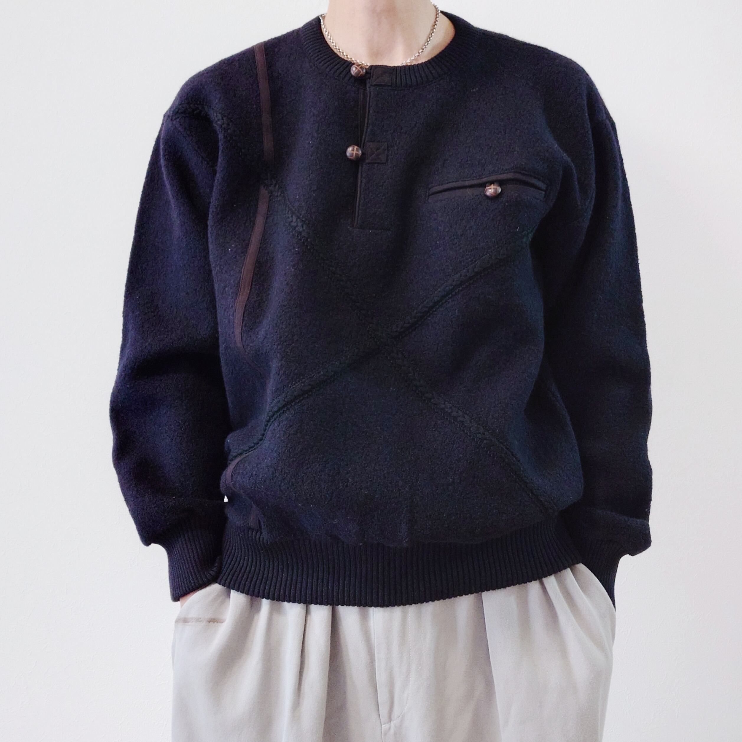 Gran Signor ロープ装飾デザインヘンリーネックニット。