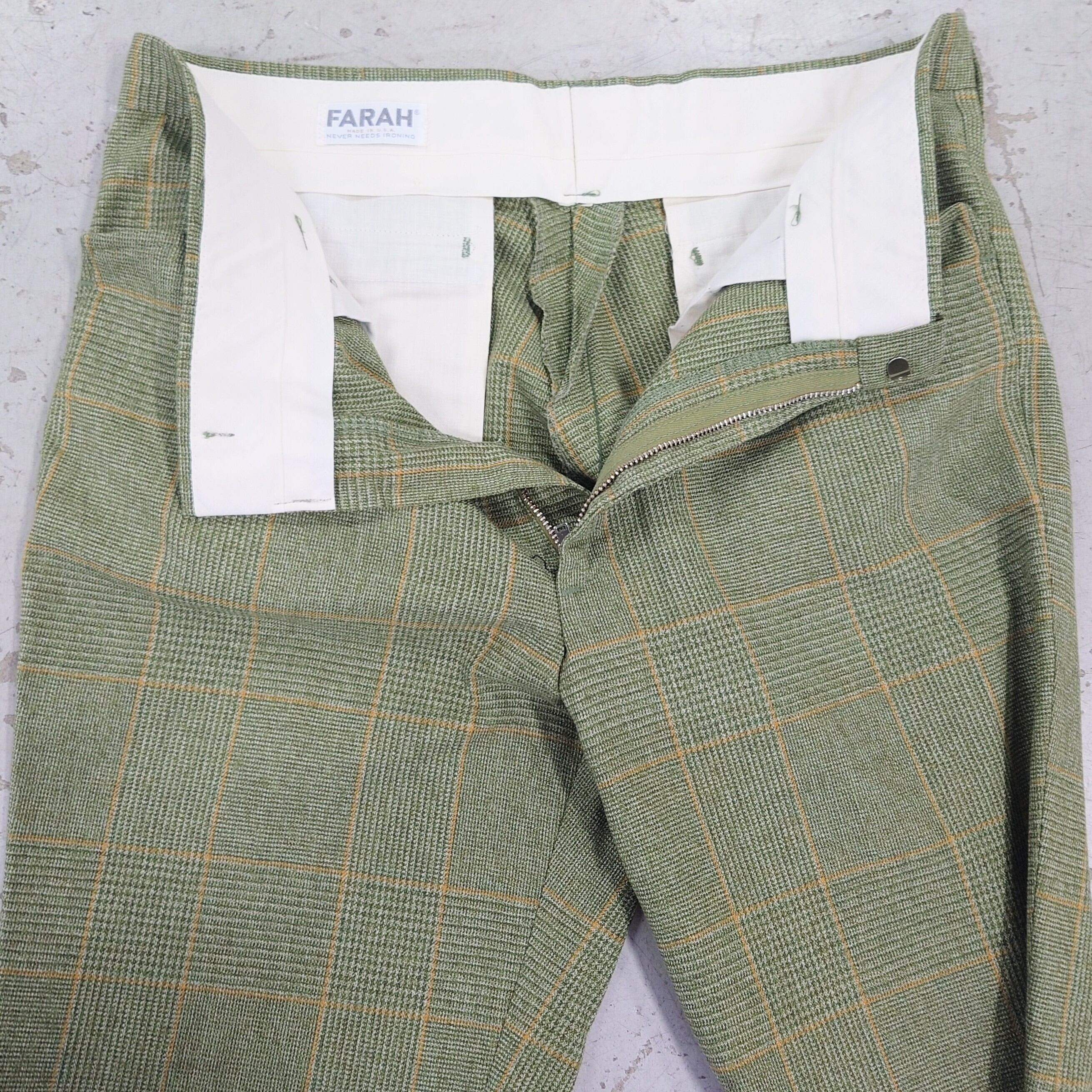 FARAH- GLEN CHECK FLARE SLACKS PT GRN