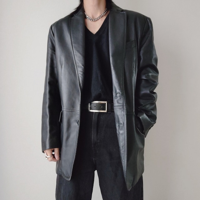 ◇DESCRIPTION◇ brand / country MODA VALENTINO / - size 表記: L 実寸(cm) 肩幅:49 身幅:53 着丈:75 袖丈:61 (model: H170 W55) color ブラック material 本革 made - feature ・レザーテーラードジャケット ・シングルブレスト ・本革使用 ・リラックスフィット caution 所々 擦れがございます。 ※こちらの商品は古着となります。予めご了承下さい。 #leather selection